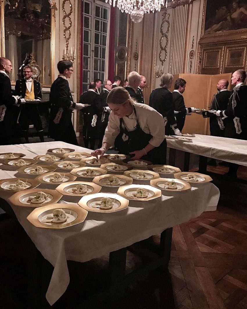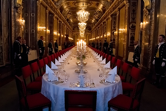 A refeição foi servida na Galeria de Karl XI e, como seria de esperar, nada foi deixado ao acaso na decoração nem nas flores (várias) utilizadas.