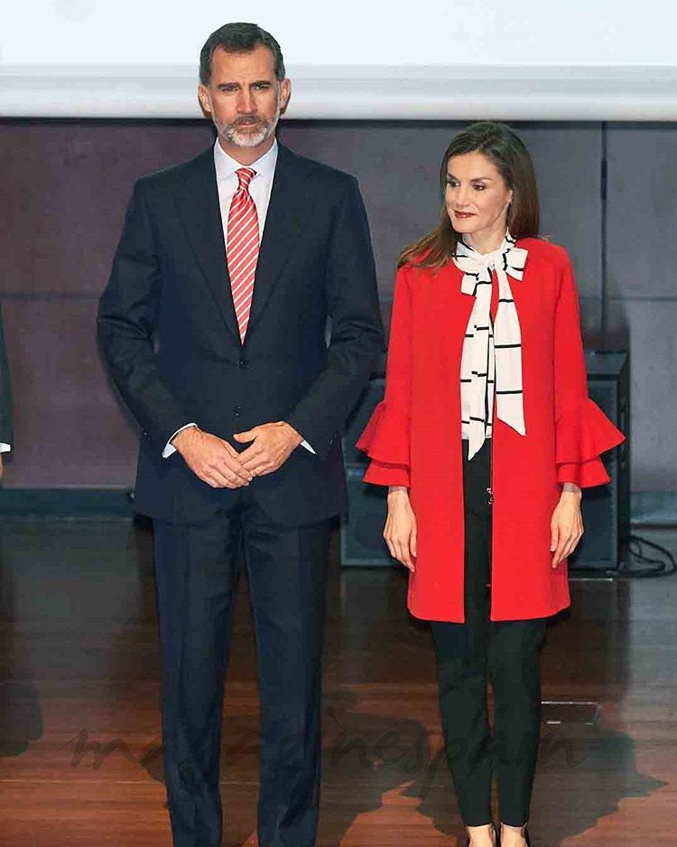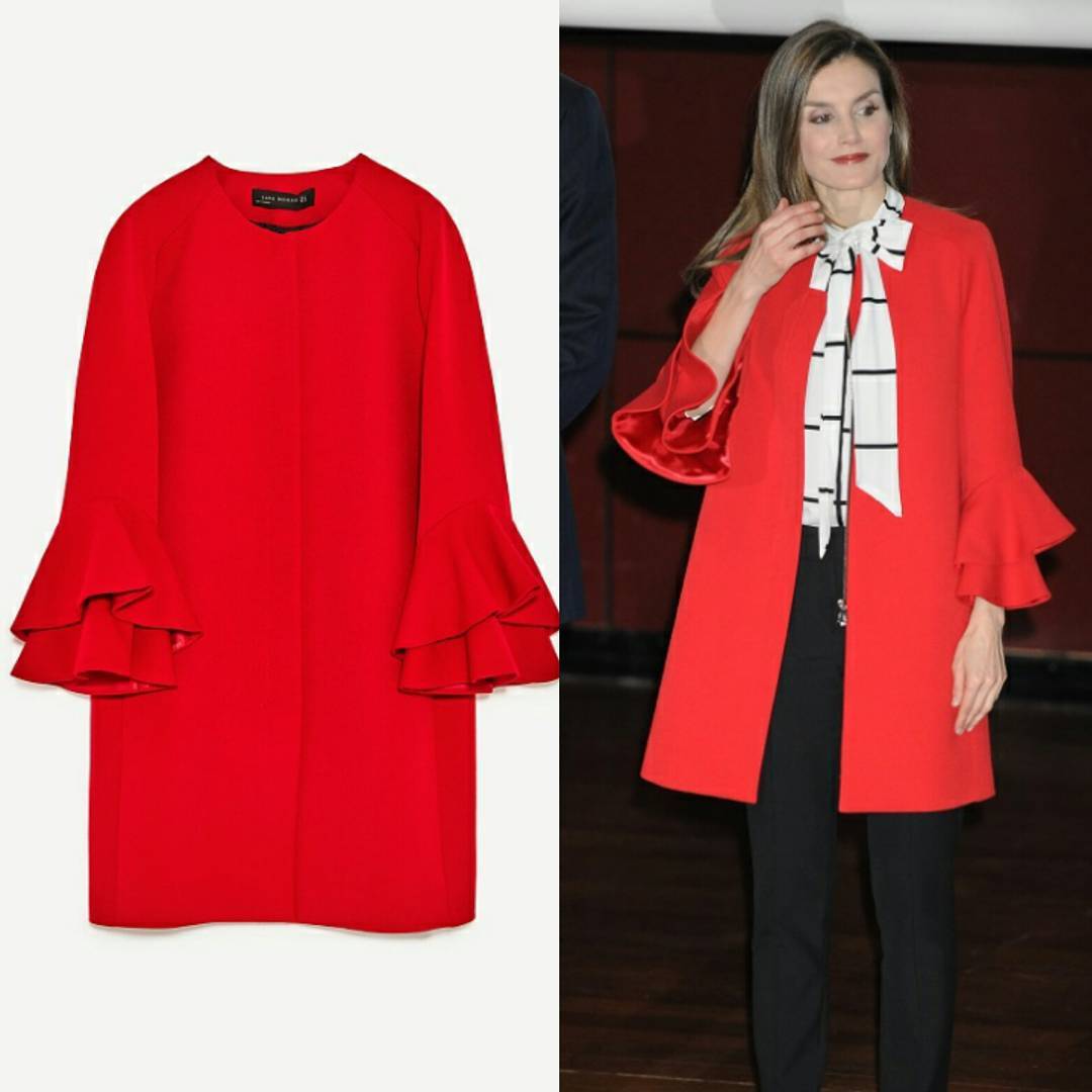 Quanto ao visual da rainha Letizia, esta estreou um casaco vermelho da Zara com mangas a parecer folhos, bem ao estilo flamenco. O casaco, que faz parte da nova coleção da marca, está à venda por 79,95 euros e seguramente terá agora uma elevada procura.