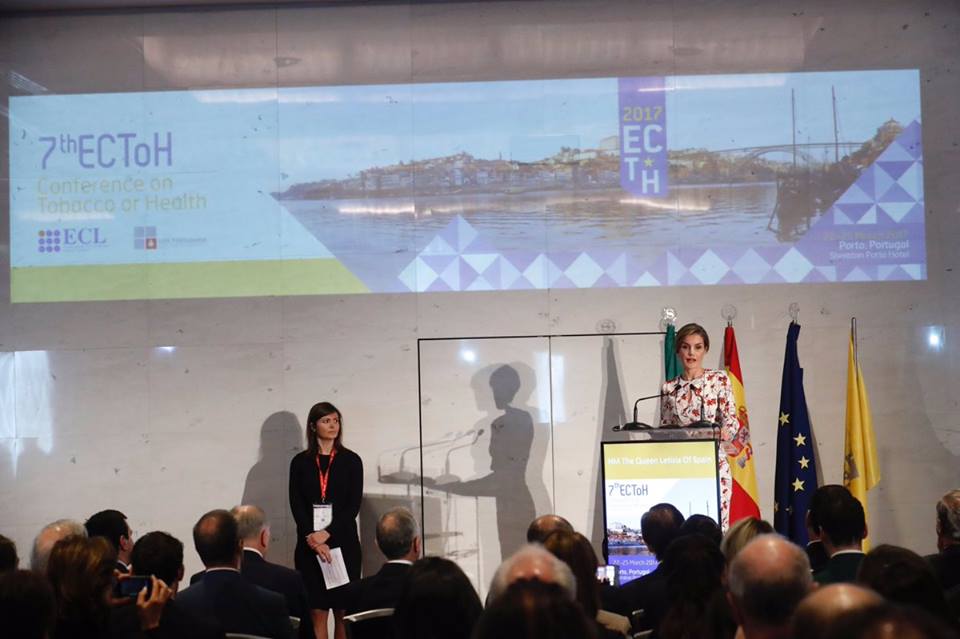 Na sessão de abertura da conferência estiveram ainda o Presidente da República, Marcelo Rebelo de Sousa; o Ministro da Saúde, Adalberto Campos Fernandes; o autarca do Porto, Rui Moreira; Geoffrey Fong, professor de Psicologia e de Saúde Pública e Sistemas de Saúde na Universidade de Waterloo; Luk Joossens, oficial de Controlo do Tabaco – Associação das Ligas Europeias Contra o Cancro; Vytenis Andriukatis, Comissário Europeu de Saúde; além de Vítor Veloso, Presidente da Liga Portuguesa Contra o Cancro e que convidou a rainha para estar ali hoje.