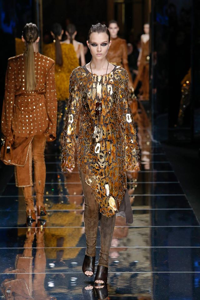 Numa coleção pensada nas guerreiras contemporâneas, as manequins surgiram numa autêntica sucessão de mulheres poderosas e confiantes, repletas de brilhos, tranças nos cabelos, botas de cano alto, franjas, rendas e muita pele.