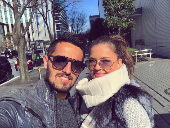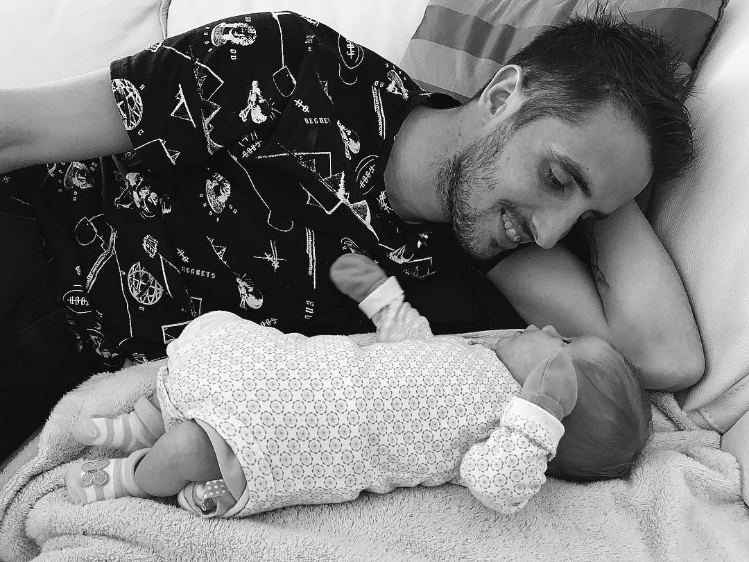 Na imagem partilhada vê-se o atual jogador do clube japonês Yokohama Marinos a olhar embevecido para a filha.