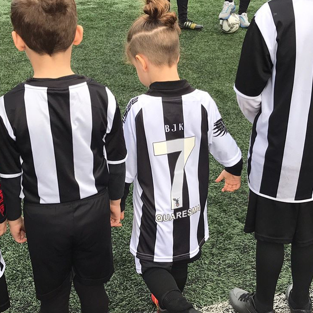 A criança – vestida com o equipamento do Besiktas – teve ainda o apoio da mãe, Dafne Santos, na plateia.