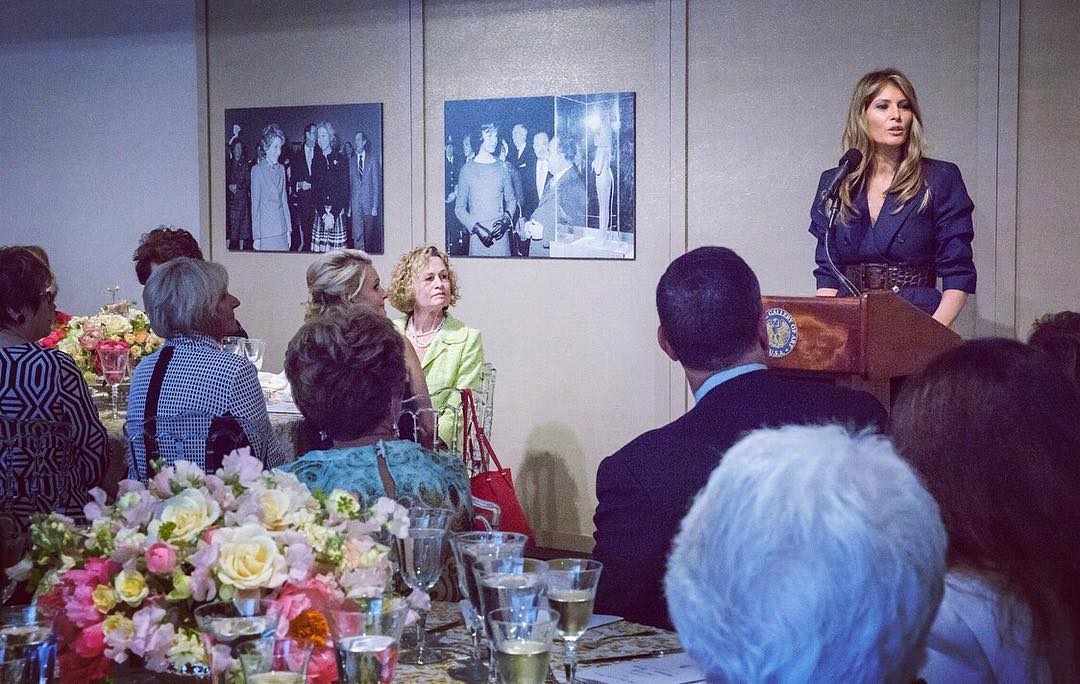 Esta quarta-feira, 26 de abril, a Primeira-Dama dos EUA comemorou 47 anos. O aniversário foi passado a trabalhar, já que Melania Trump esteve a discursar no almoço dos cônjuges do Senado na National Gallery of Art, como convidada de honra, e depois foi à Casa Branca entregar o prémio de Professor do Ano.