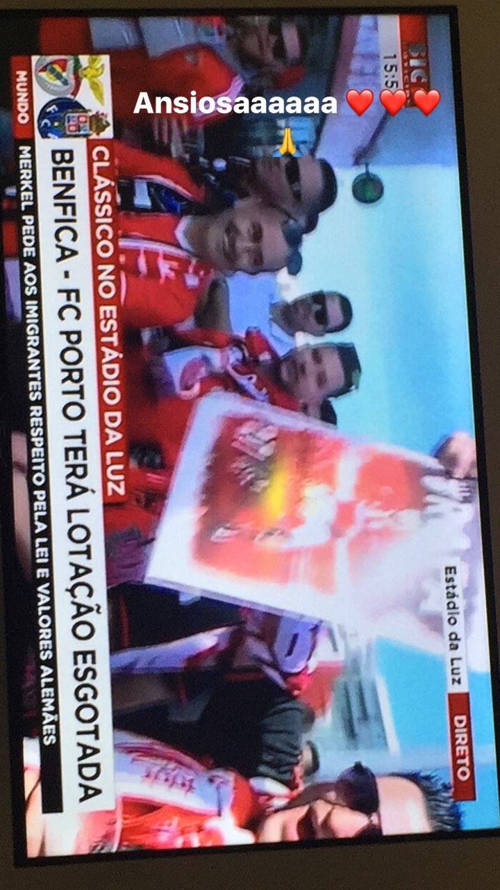 Em noite de clássico, Sofia Sousa pode não ter ido ao Estádio da Luz, este sábado, mas assistiu a tudo no conforto do lar, conforme mostrou no seu Instagram Stories.