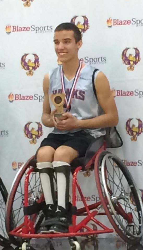 Usa aparelhos nas pernas e cadeira de rodas para o ajudar na locomoção, mas tem a vida de um adolescente comum.