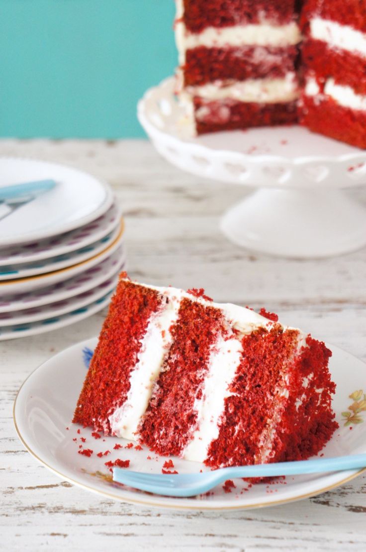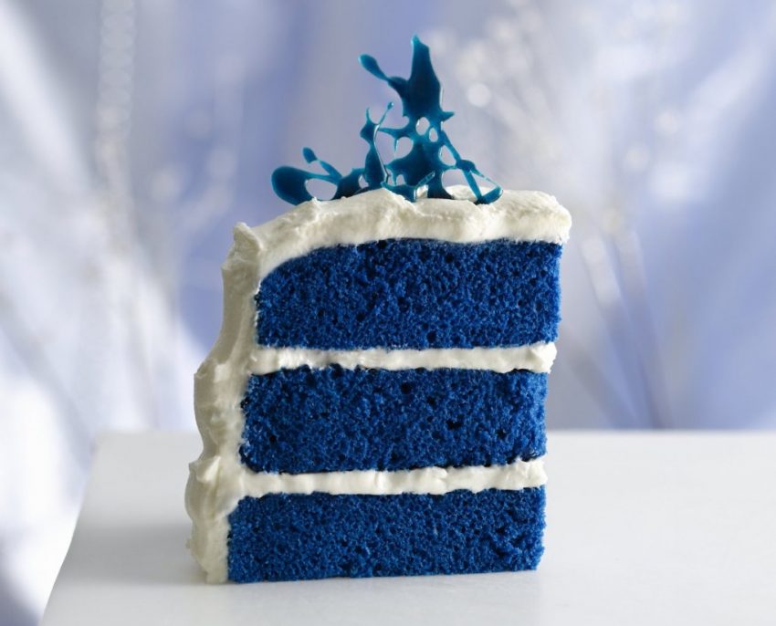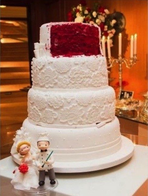 Uma maneira interessante de causar surpresa nos convidados é fazer uma cobertura tradicional branca por fora, com um bolo red velvet ou blue velvet por dentro. As cores ficam marcantes, sendo que o vermelho remete para o sentimento de paixão entre os noivos, e os bolos ficam saborosos. Além disso, podem ser combinados com vários recheios.