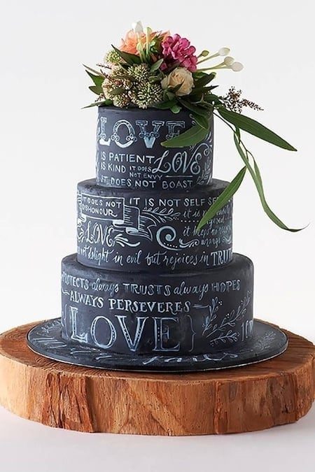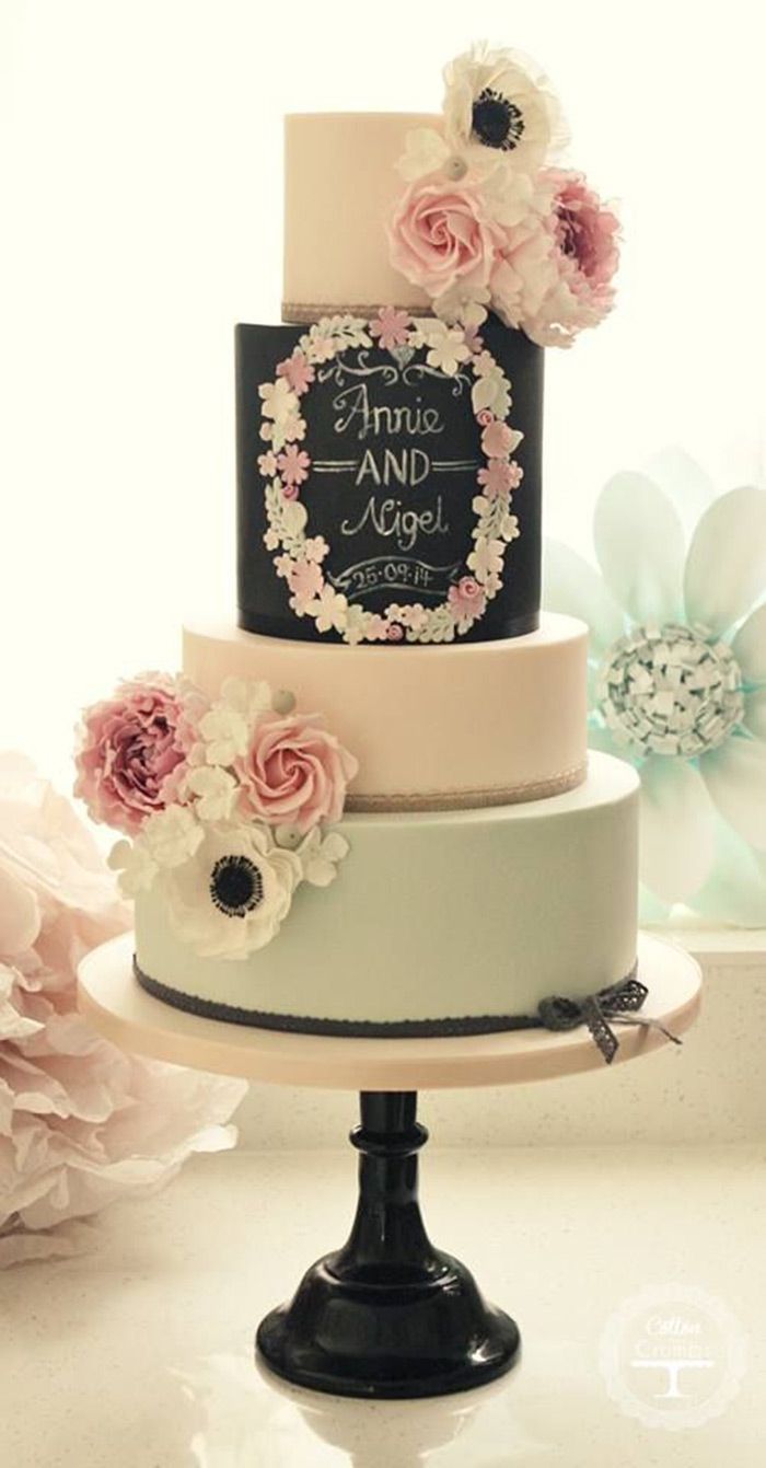 Tecnicamente já era tendência em 2016, mas continua em força. O bolo chalkboard imita um quadro preto de ardósia.