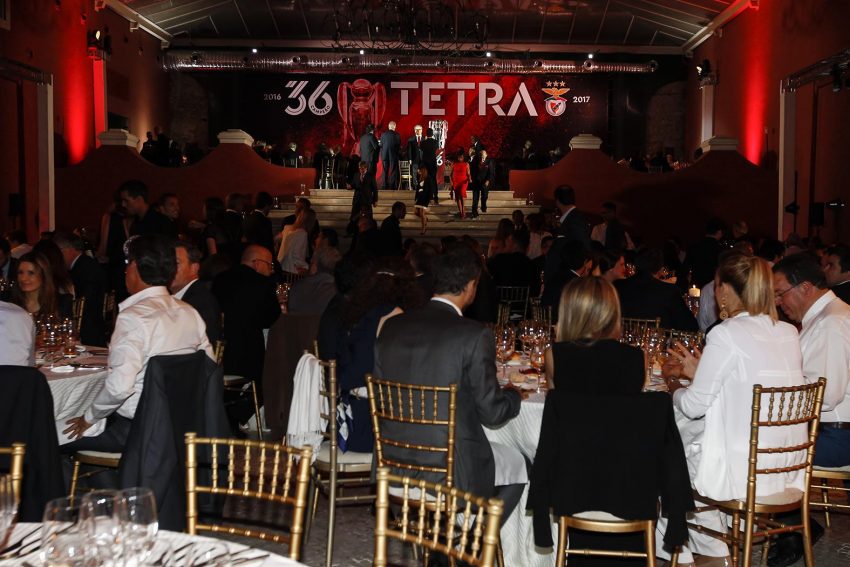 Jogadores, equipa técnica e dirigentes do Benfica, bem como antigos atletas e treinadores do clube reuniram-se no Palácio de Xabregas, em Lisboa, para comemorar o inédito tetracampeonato.