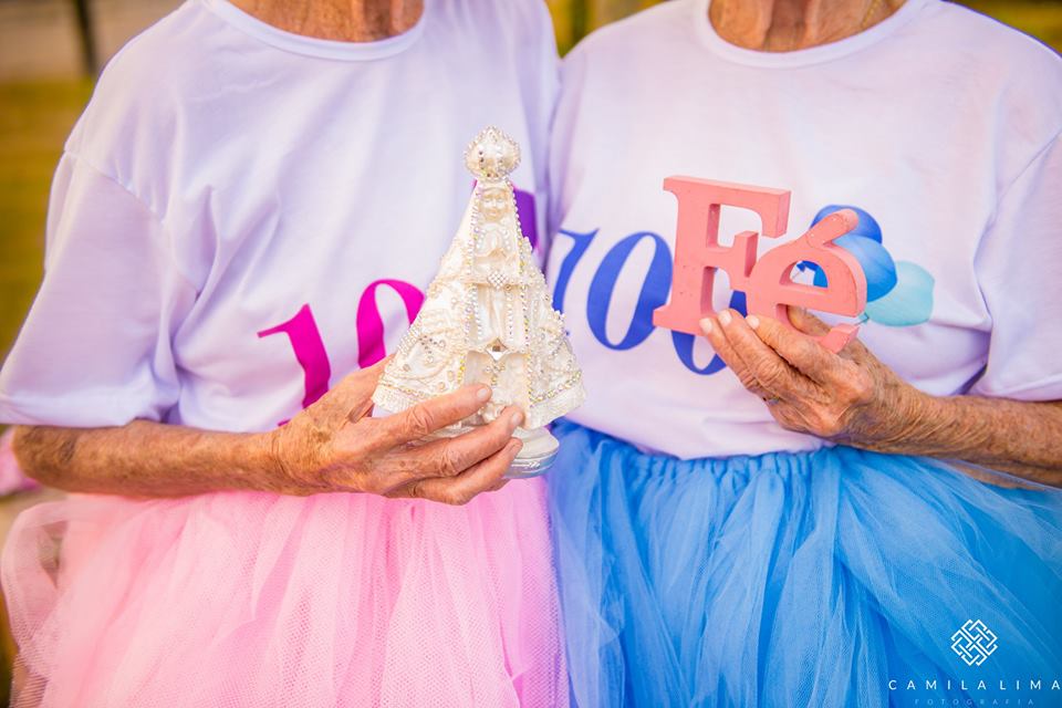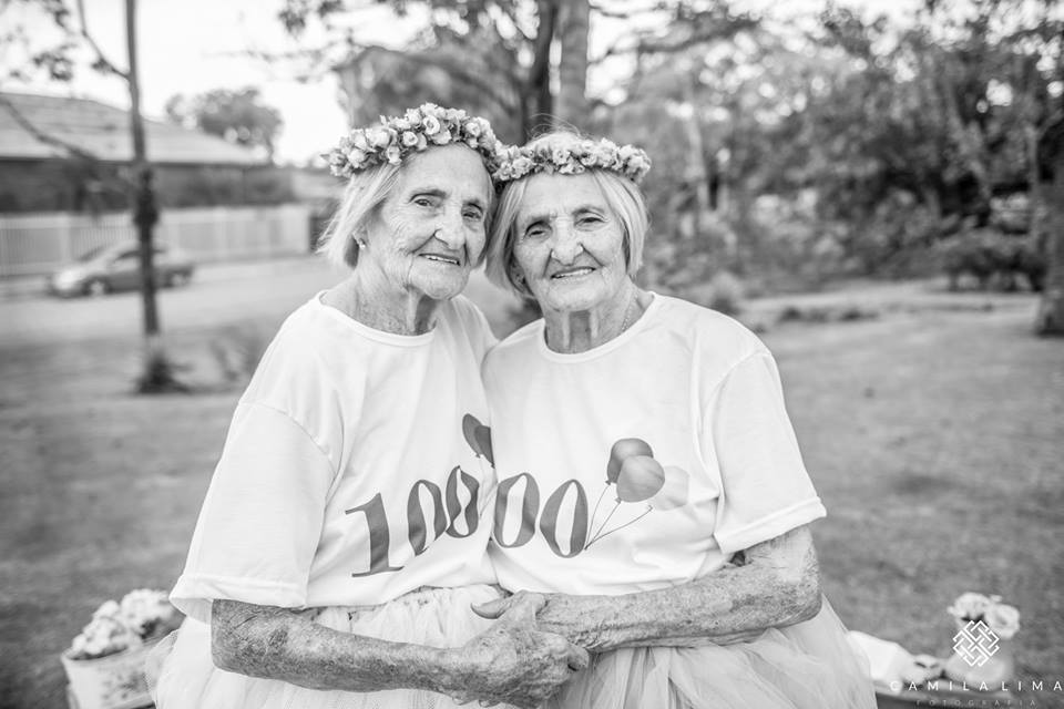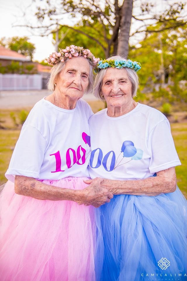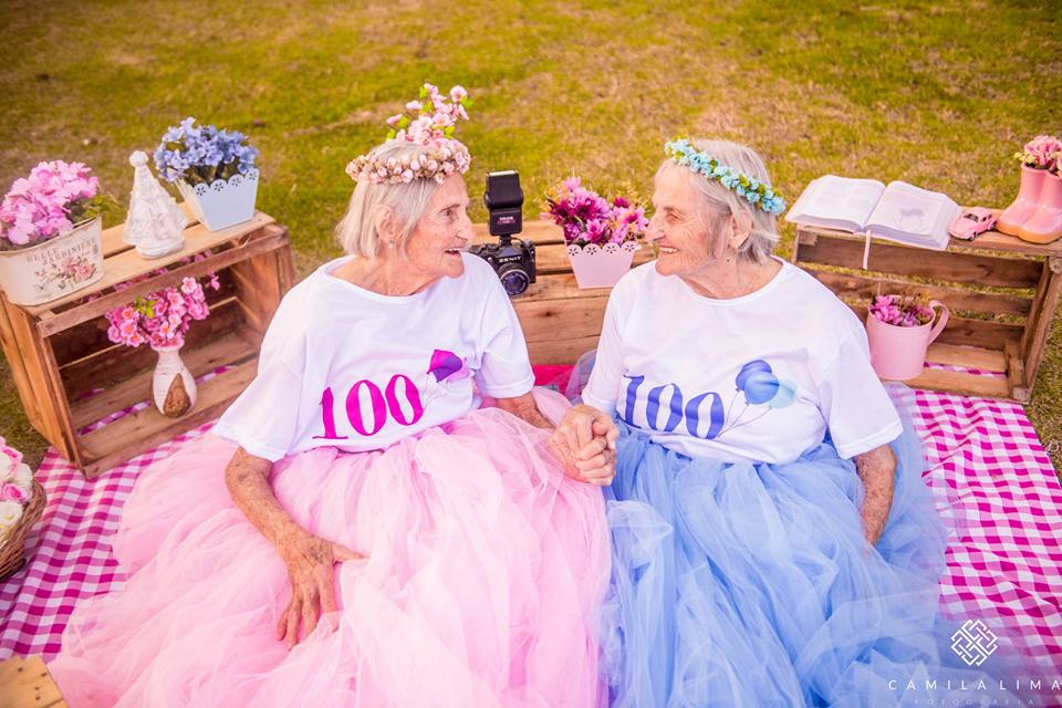 “É com o coração cheio de amor que eu mostro o resultado do trabalho de hoje!! Eu tive o prazer de fotografar as gêmeas mais velhinhas do estado e a 2º do Brasil! Ensaio fotográfico em comemoração aos 100 anos das irmãs gêmeas Dª Paulina e Dª Maria. Eu vi a reportagem delas na tv gazeta e fiquei APAIXONADA! Quando é que se vê uma vitória dessa na vida?”, explicou Camila Lima no Facebook, esta quarta-feira.