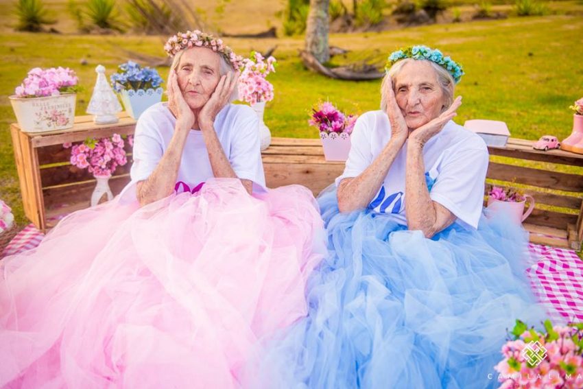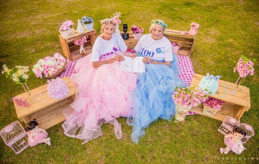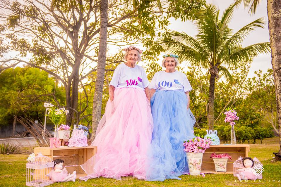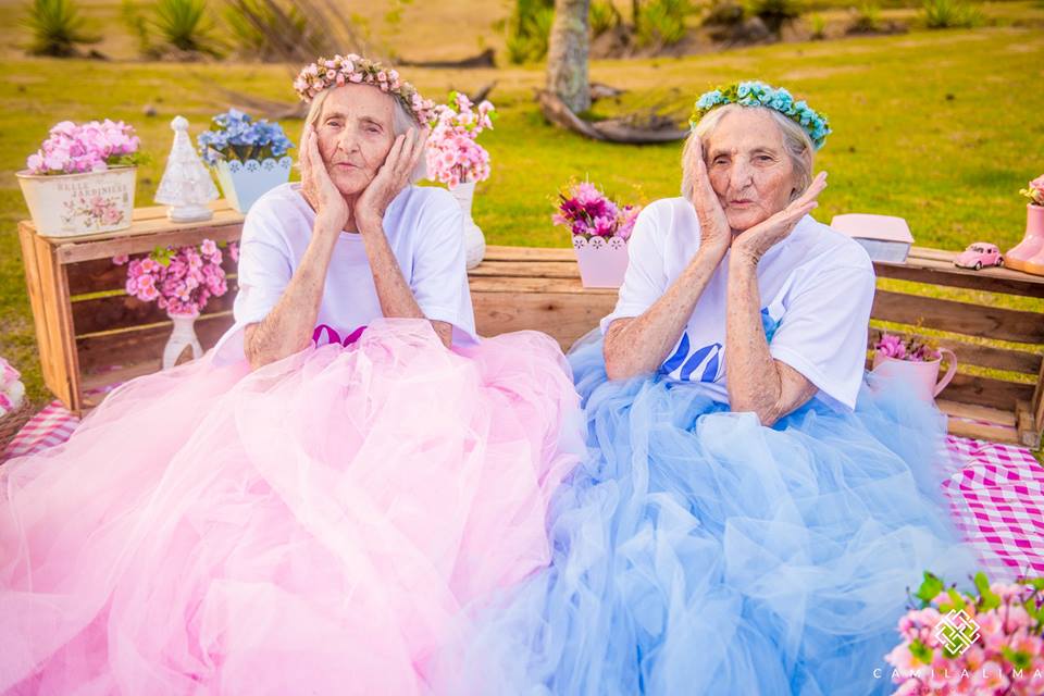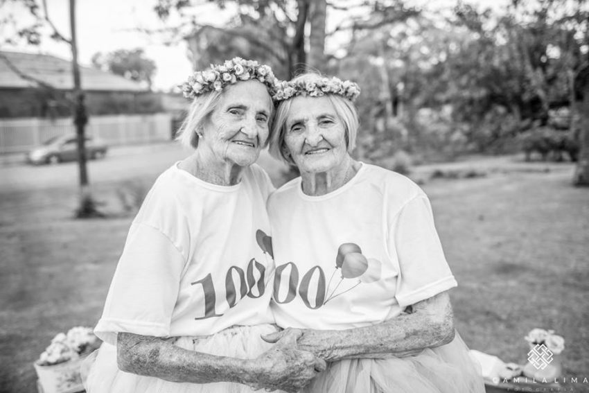 Tecnicamente as irmãs brasileiras Maria Pignaton Pontin e Paulina Pignaton Pandolfi ainda não têm 100 anos. A idade será atingida a 24 de maio, mas as gémeas decidiram antecipar a festa. Como? Ao protagonizar uma sessão fotográfica especial, que receberam de prenda da fotógrafa Camila Lima.