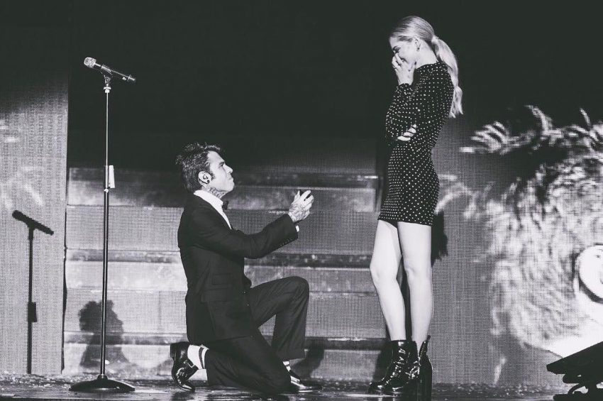 “Não precisamos de anéis para nos unir, mas para perguntar o que eu estou a pedir talvez sim”, disse Fedez enquanto se ajoelhava, deixando a namorada em lágrimas.