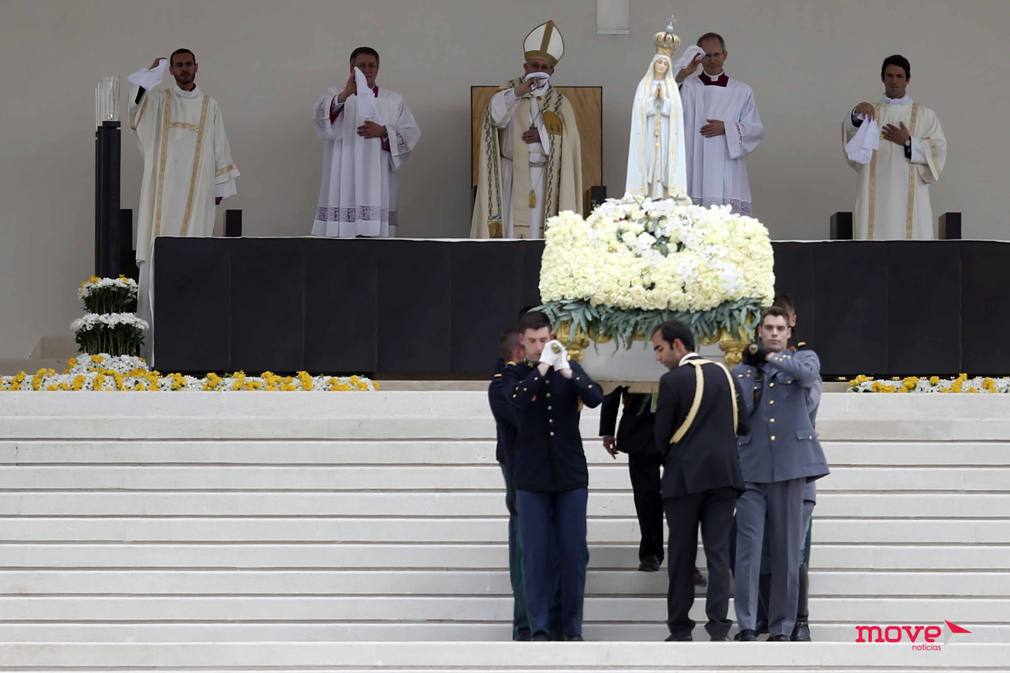 O papa Francisco abandonou às 13:17 deste sábado o recinto do Santuário de Fátima com milhares de pessoas a acenarem com lenços brancos e a gritarem “Viva o Papa”, encerrando assim as celebrações religiosas dos cem anos das aparições na Cova da Iria.