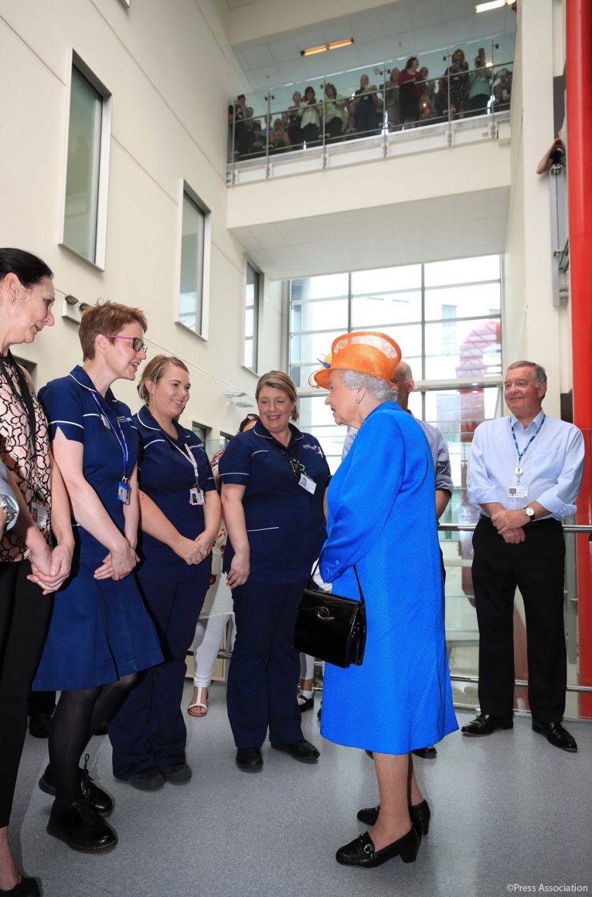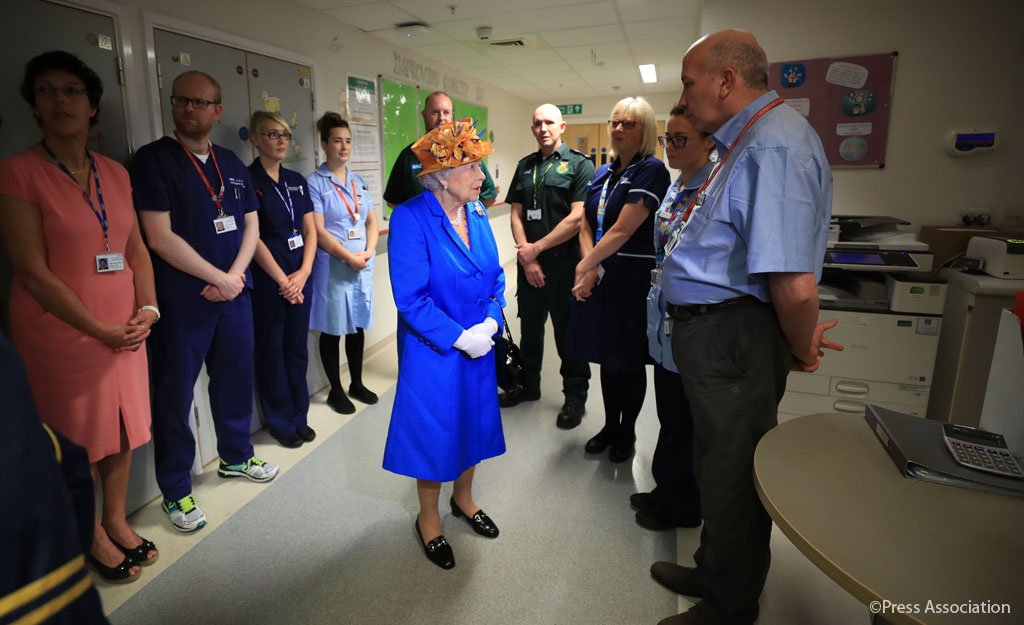 A visita ao hospital foi curta, uma vez que Isabel II tinha um ato oficial, que passava por visitar quintas do ducado de Lancaster em Staffordshire.