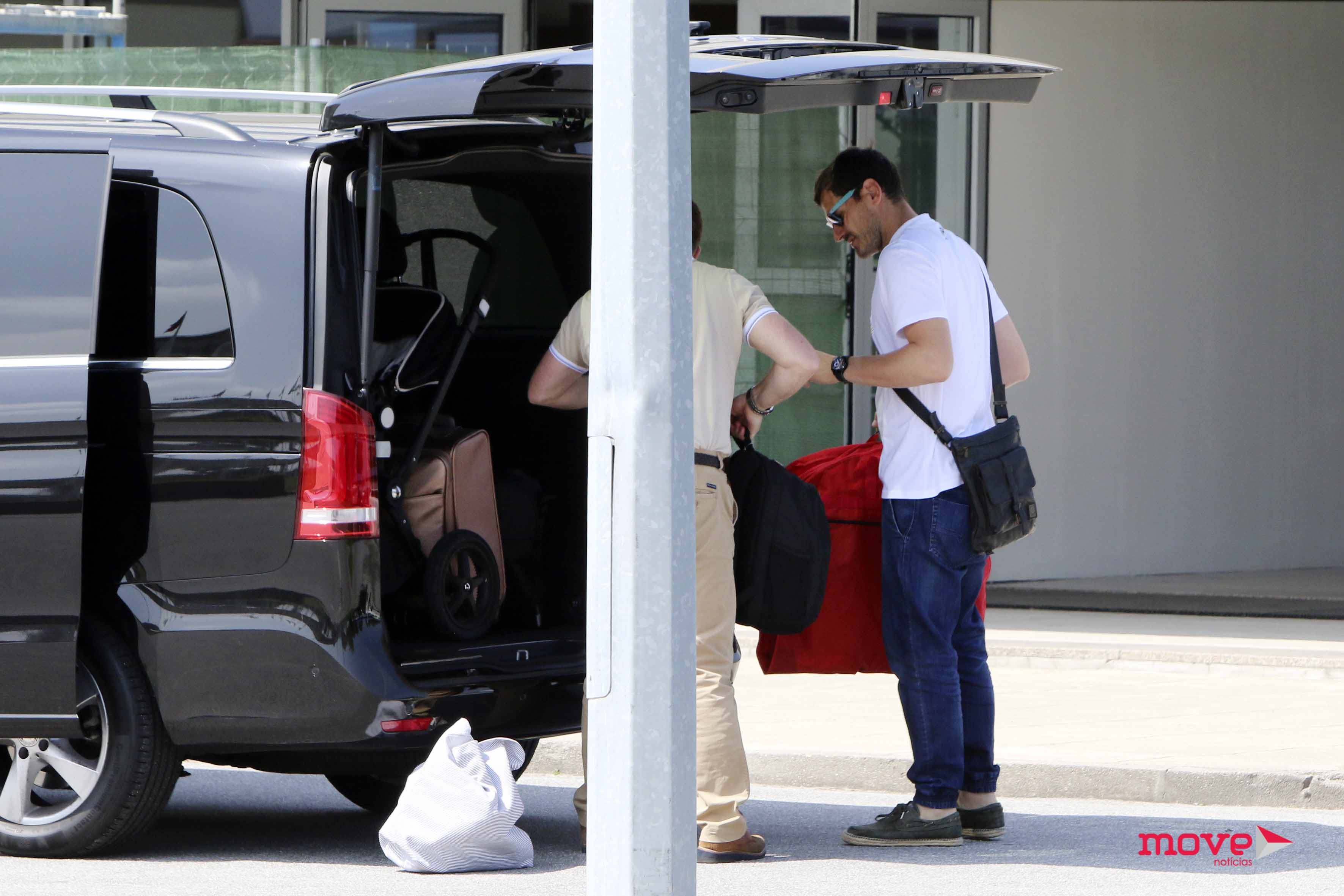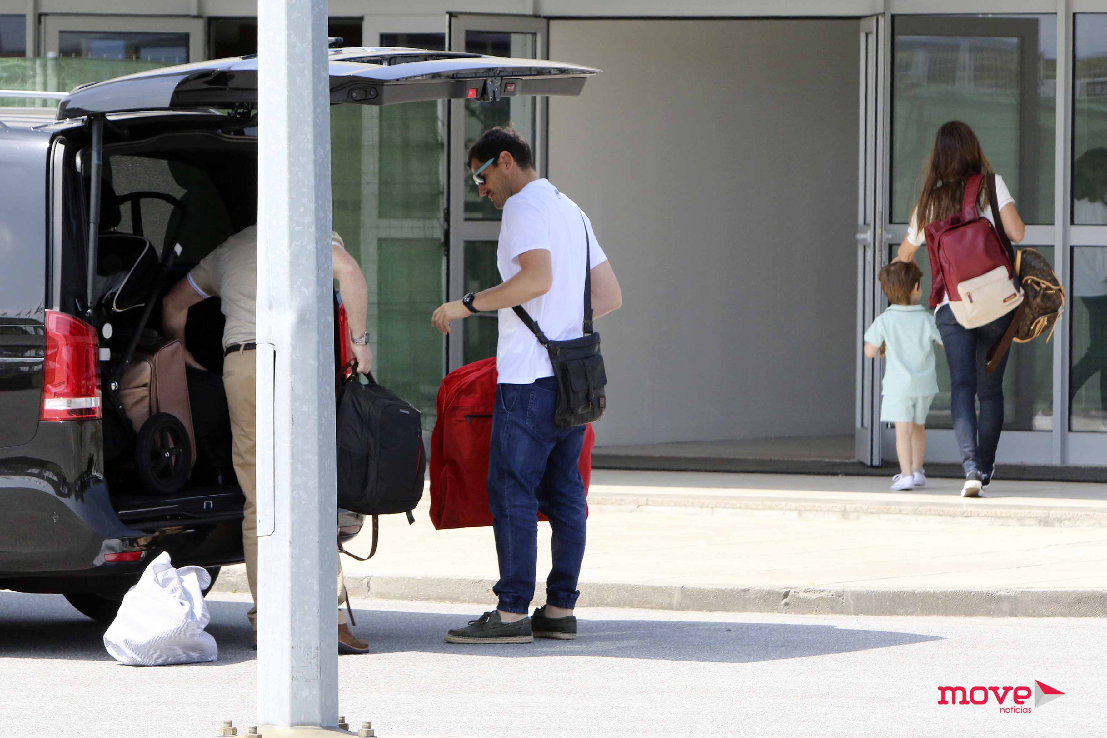 A Move Notícias encontrou o internacional espanhol, a mulher Sara Carbonero e os filhos Martín e Lucas no aeroporto do Porto esta segunda-feira. A família chegou numa carrinha e seguiu depois para a zona das partidas, apanhando o avião das 12h15 com destino a Madrid.