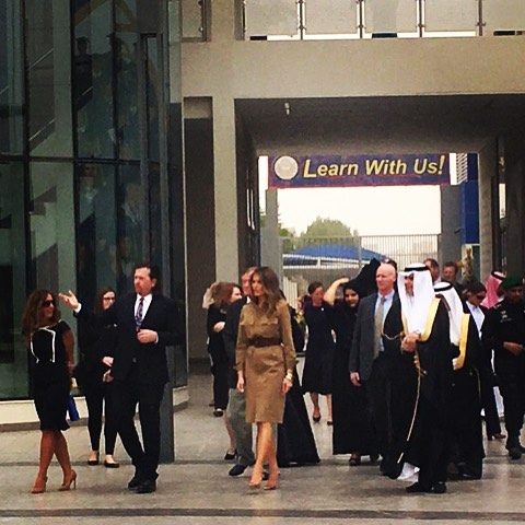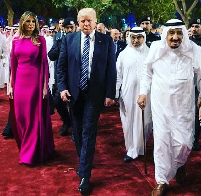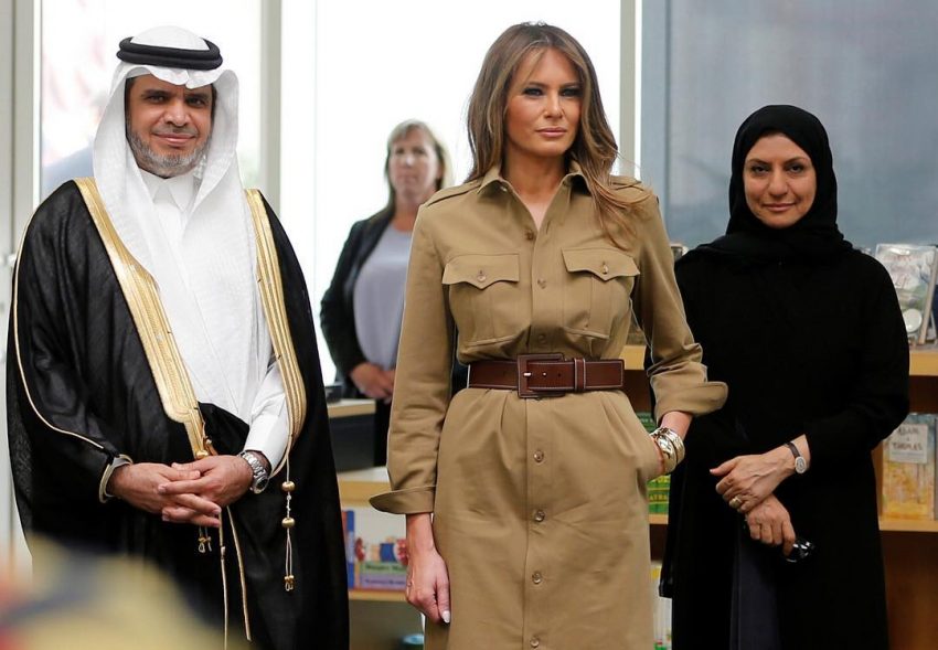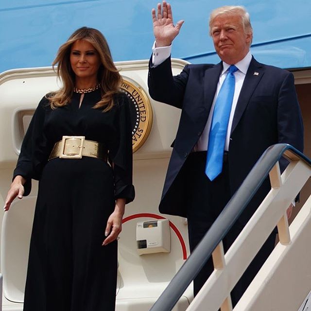 O casal presidencial norte-americano está na Arábia Saudita, onde foi recebido pelo rei Salman bin Abdulaziz al-Saud, de 81 anos, numa cerimónia de boas-vindas, com honras militares, no aeroporto internacional King Khalid, em Riade. Trata-se da primeira visita oficial ao estrangeiro de Donald e Melania Trump e a Primeira-Dama não tem desiludido no que toca ao guarda-roupa escolhido.