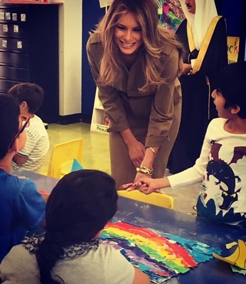 Aparte a polémica de não ter usado um lenço a tapar a cabeça, como é de bom tom acontecer com os estrangeiros quando estão num país muçulmano, Melania tem mostrado toda a sua elegância.