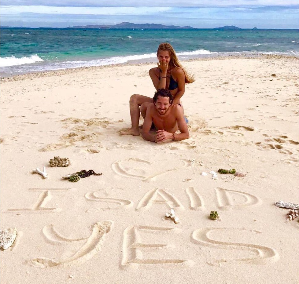 “Dreams come true [Os sonhos tornam-se realidade]”, escreveu Francisco Froes na legenda da imagem, onde é possível ler-se na areia “I Said Yes [Eu disse sim]”.