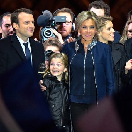 A paixão pela marca é tanta que é presença assídua nos desfiles. Num deles usou o mesmo casaco – com metal na zona do pescoço – que vestia no dia em que Macron venceu as eleições presidenciais.