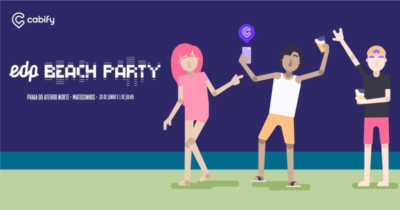 Este ano a Cabify associa-se à EDP Beach Party. Assim, todas as viagens vão ter um desconto automático de 15%. Para além disso, a primeira viagem é grátis (até 8€) para todos os novos utilizadores.
