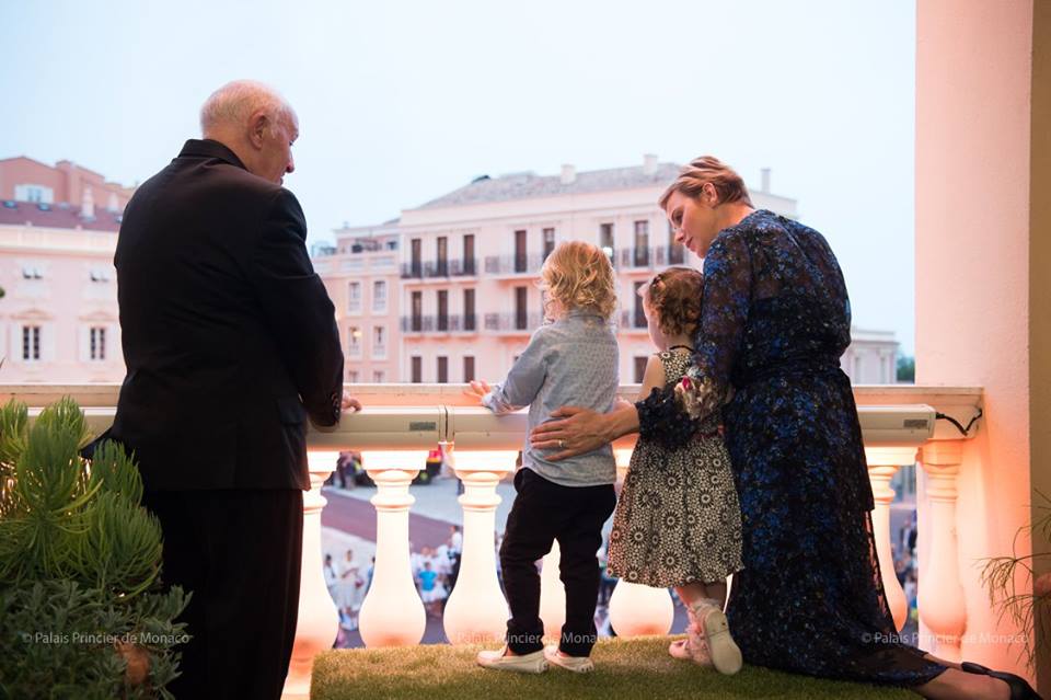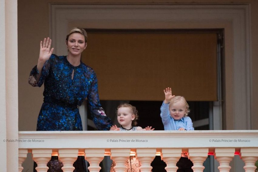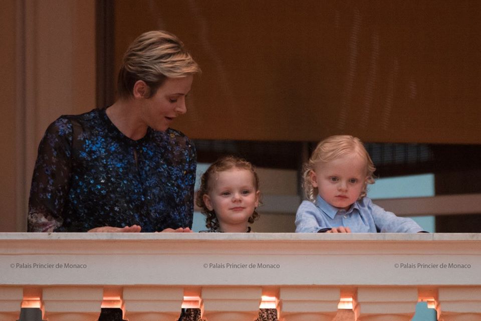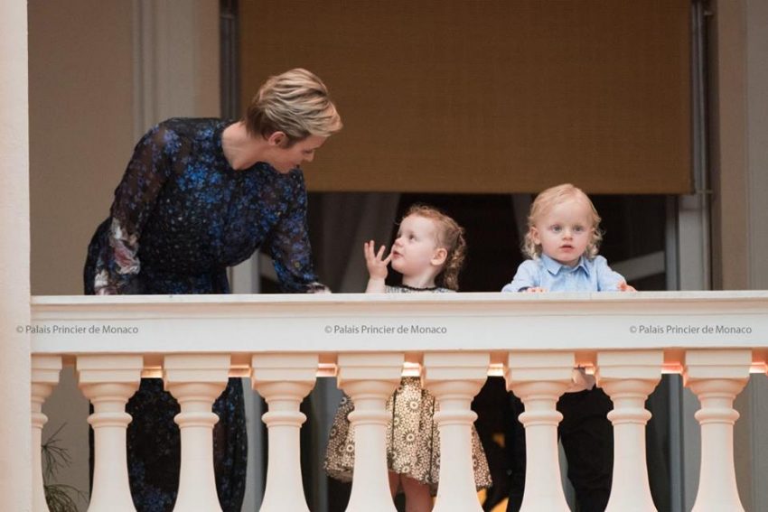 No ano passado, os filhos dos príncipes ainda eram pequenos para assistir à festa. Agora saudaram os monegascos da varanda do Palácio, ao lado de Charlene, já que Alberto estava numa viagem oficial à Irlanda.