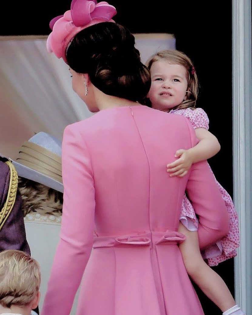 A Duquesa de Cambridge juntou-se depois à restante família real, e aos filhos George e Charlotte que a aguardavam no Palácio de Buckingham, para depois verem da varanda as tropas e os aviões da Força Aérea Real.