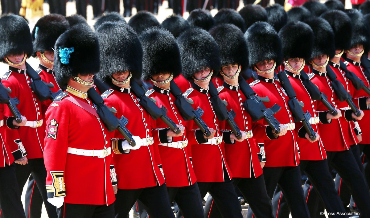 ‘Trooping the Colour’ começou no século XVIII, quando as bandeiras (“colours”) do batalhão do exército eram mostradas às tropas (“trooped”) nas fileiras para que os soldados as reconhecessem nos campos de batalha.