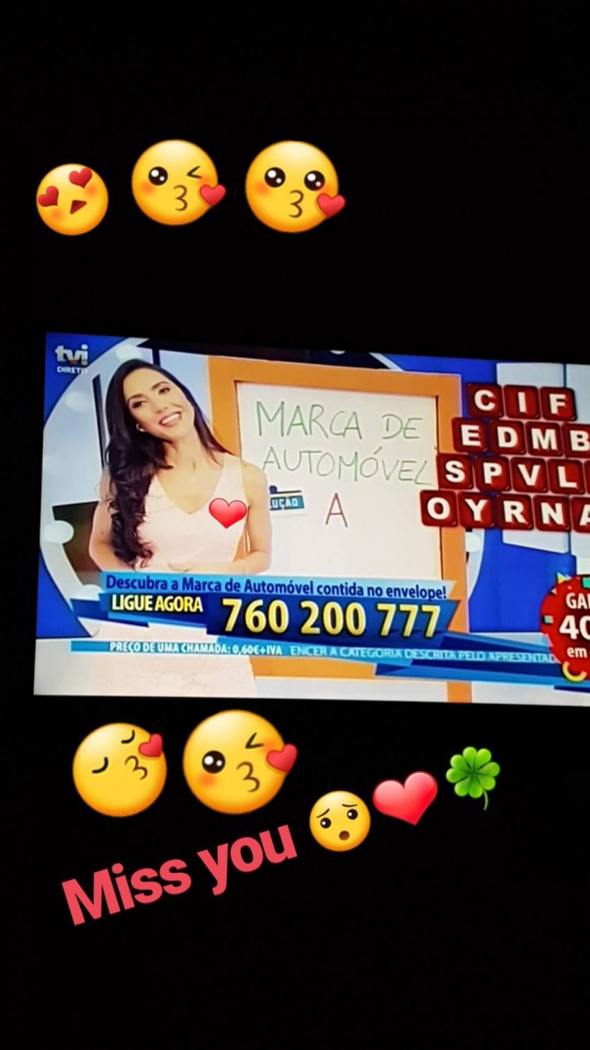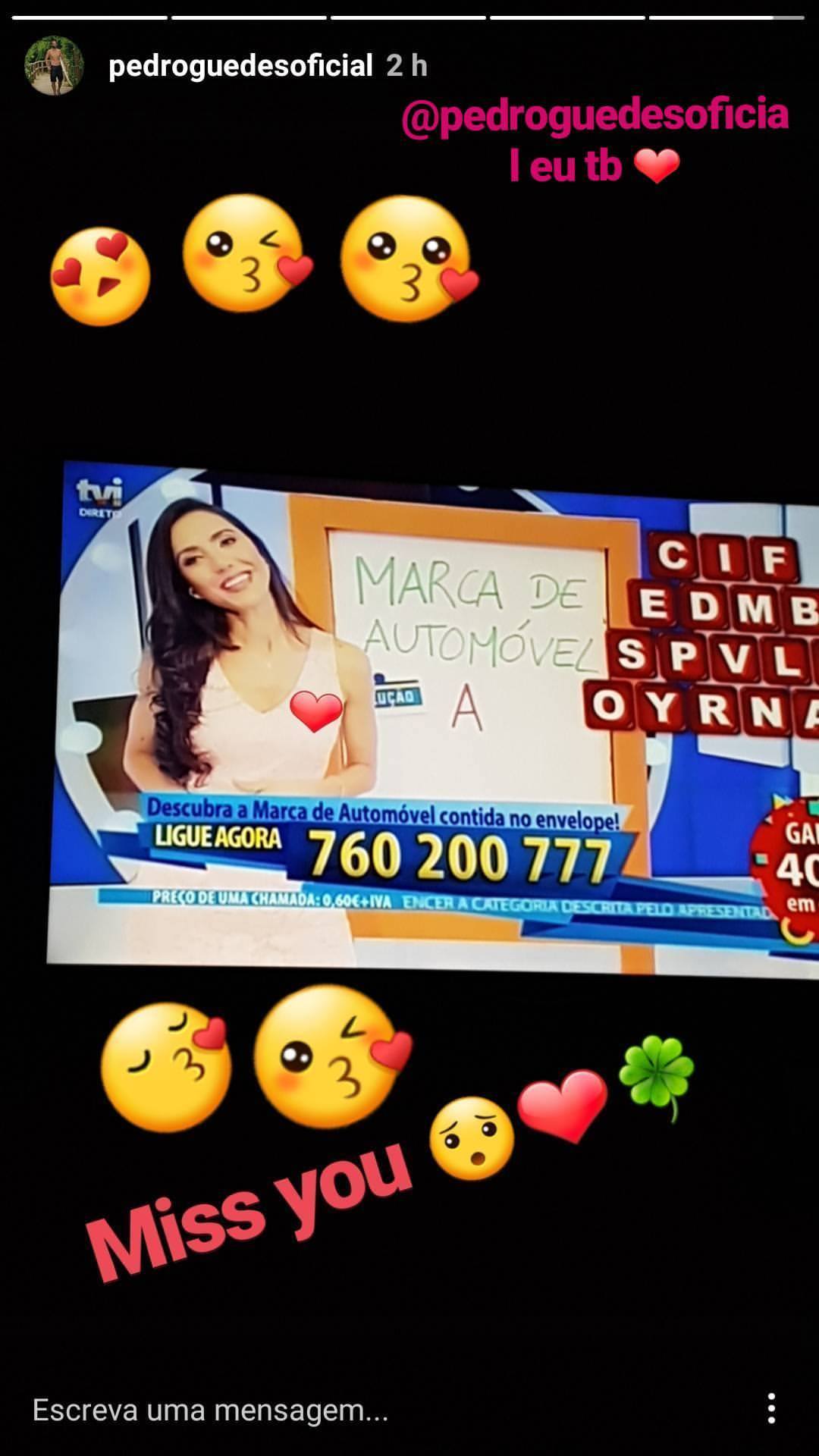 “Miss you” (Sinto a tua falta), pôs Pedro Guedes na legenda do frame que tirou à namorada quando estava a apresentar o concurso.