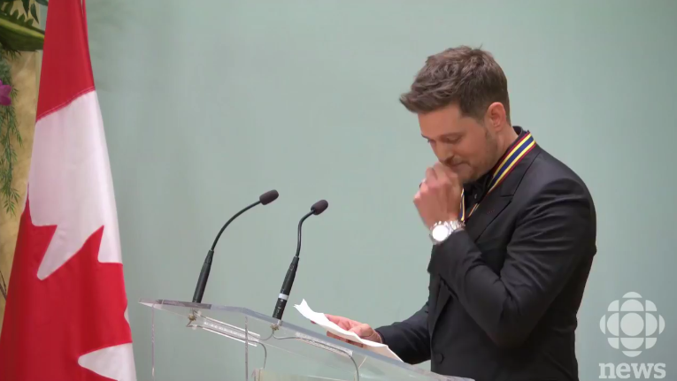 “Estou aqui com toda a humildade, porque me permitiram [os Canadianos] ser um dos seus representantes musicais e concedem-me esta honra no que foi um momento emocionalmente difícil para a minha família. Eu aprecio o amor e apoio que me deram e enchem-se de orgulho, sempre que estou no palco, dizer: ‘O meu nome é Michael Steven Bublé e eu sou canadiano'”, concluiu antes de ser aplaudido de pé.
