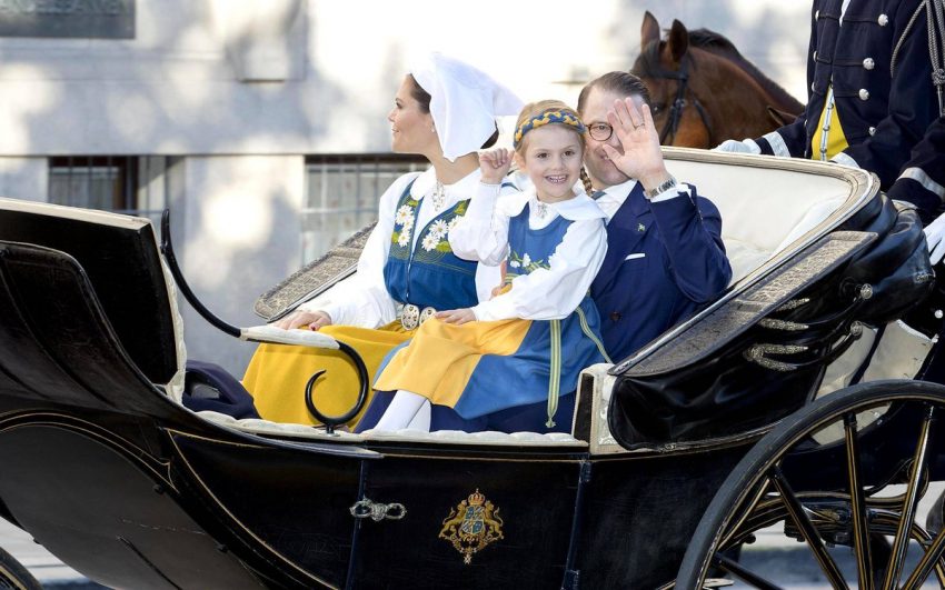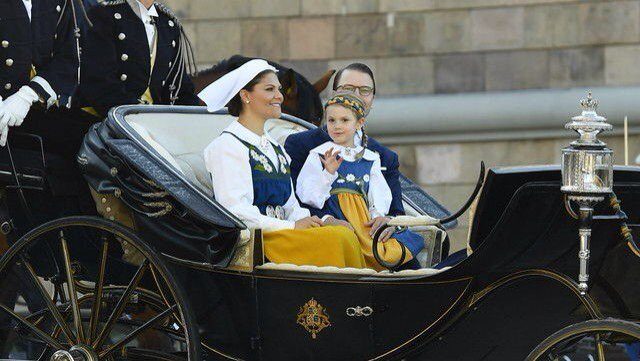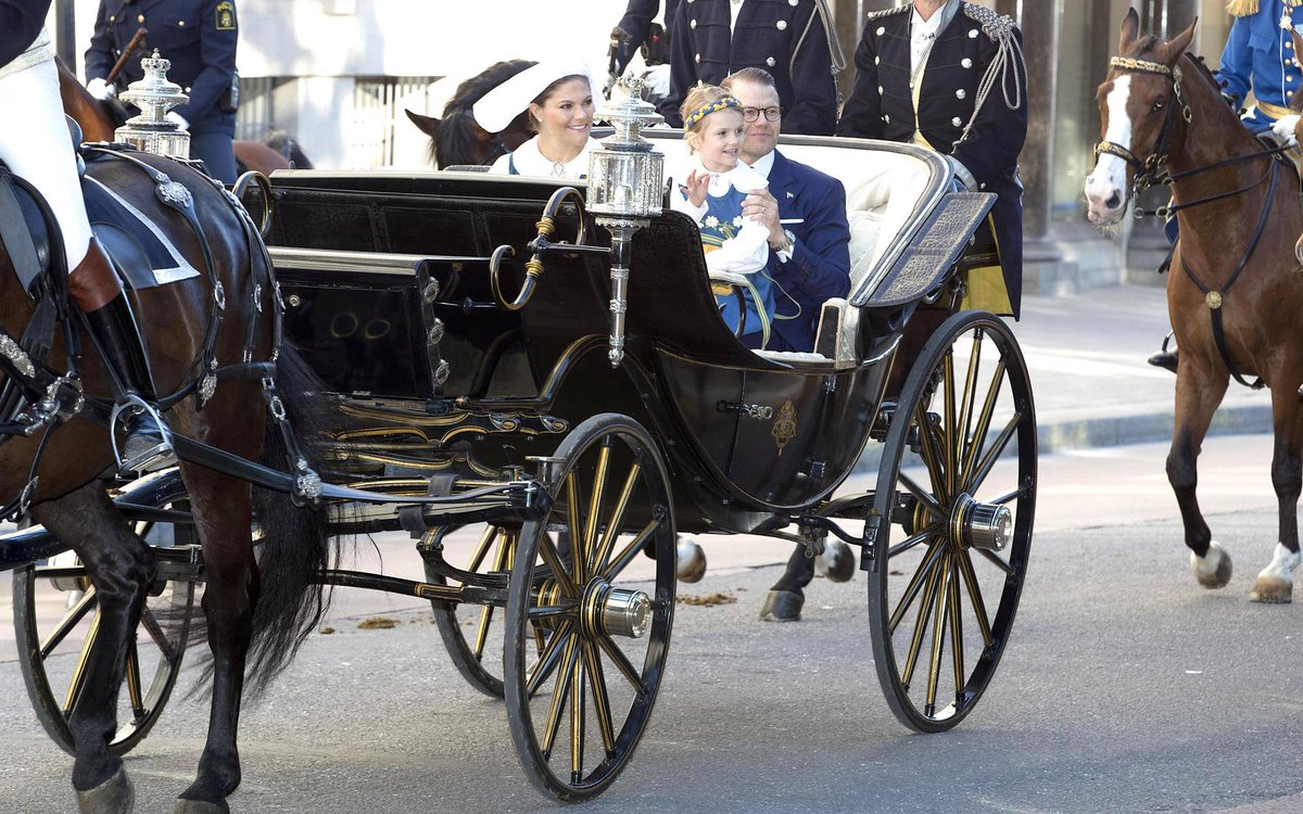 A princesa Estelle, filha da princesa herdeira Victoria, chegou de carruagem com os pais ao Palácio de Slottsbacken, em Estocolmo. Sorridente e bem ciente do seu papel como a segunda na linha de sucessão ao trono, a menina, de cinco anos, cativou todos.