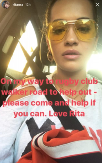 Rita Ora, de 26 anos, publicou algumas fotografias no InstaStories, onde aproveitou para apelar aos fãs que viessem também ajudar se o pudessem fazer. A cantora contou que costumava tocar na Grenfell Tower quando era criança, o que fez com que a notícia do incêndio tivesse um maior efeito emocional.