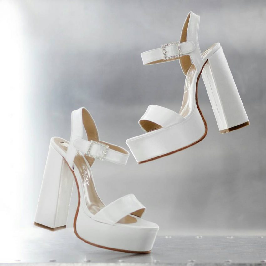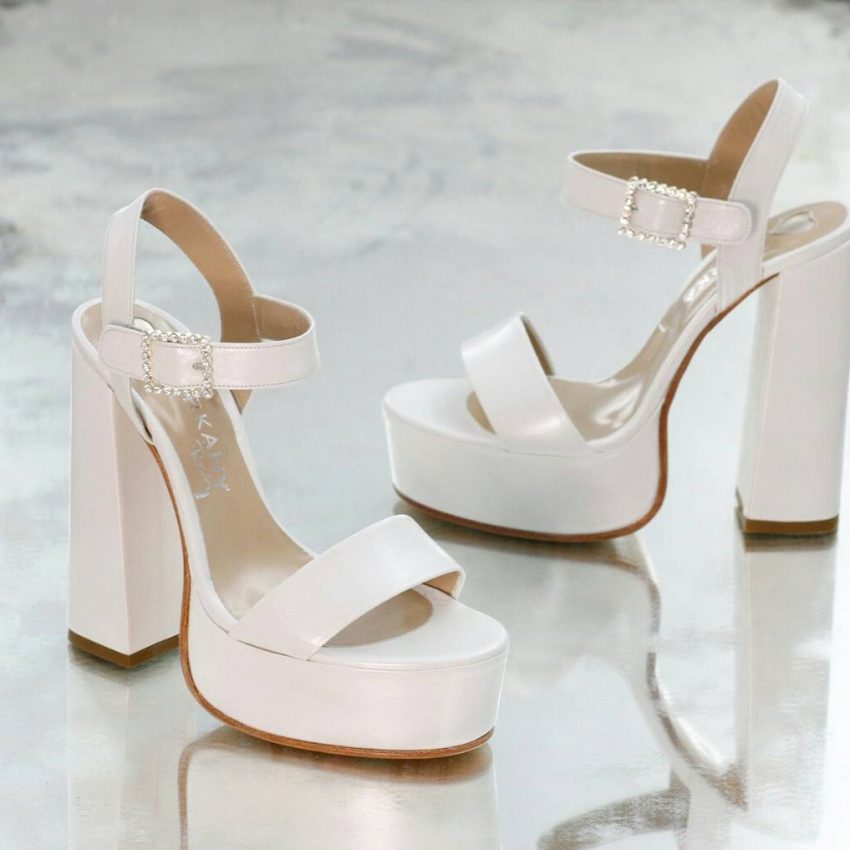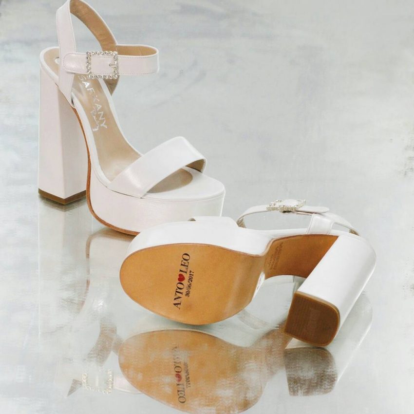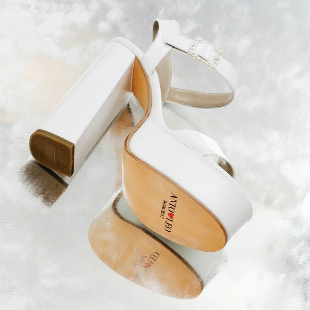 Comecemos pelos pés. A noiva levava sandálias em tom pérola criadas especialmente para si, feitas à mão na Argentina e eram da marca Sarkany Barcelona.