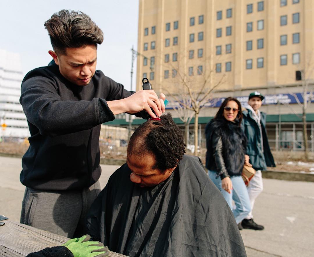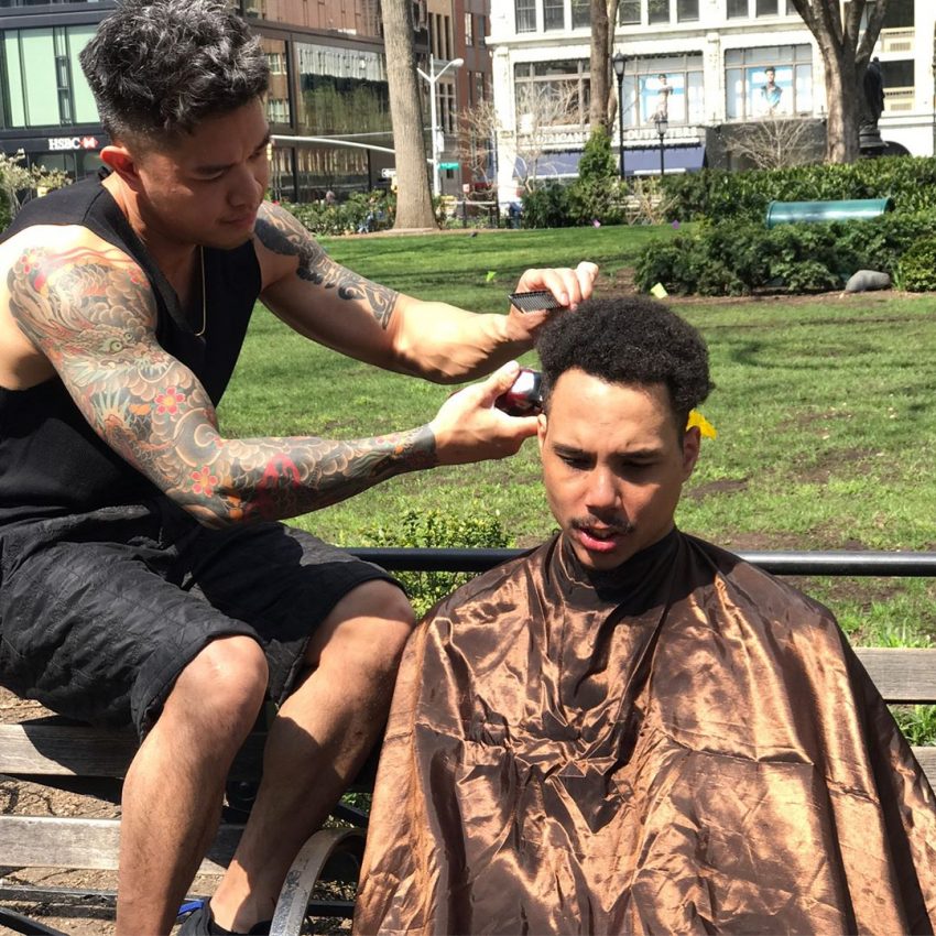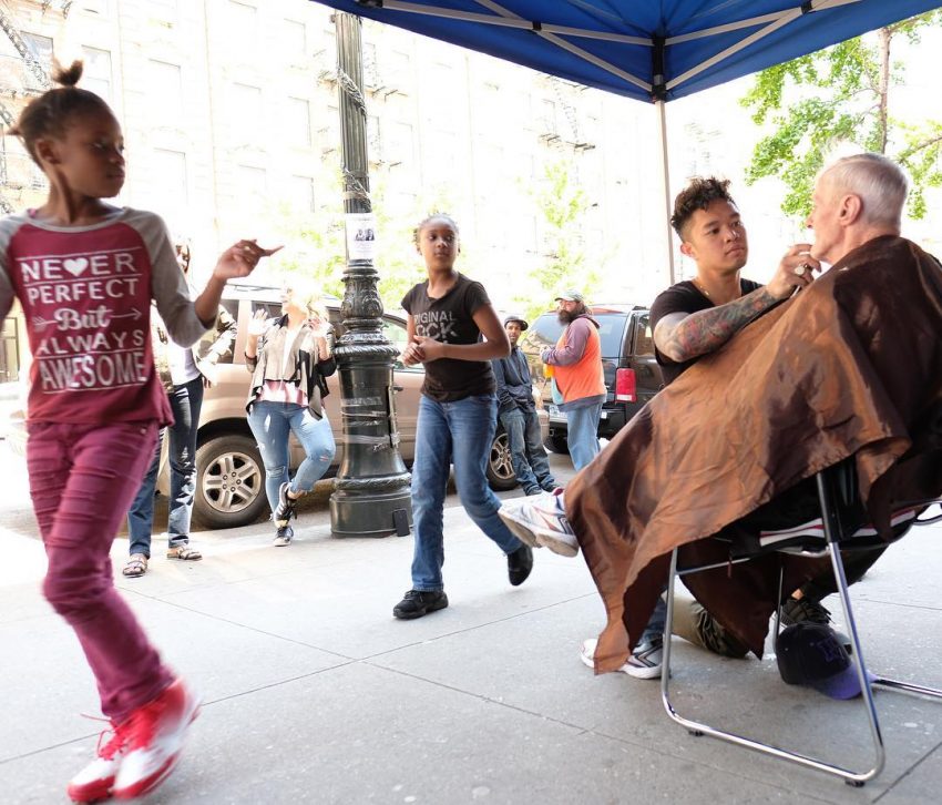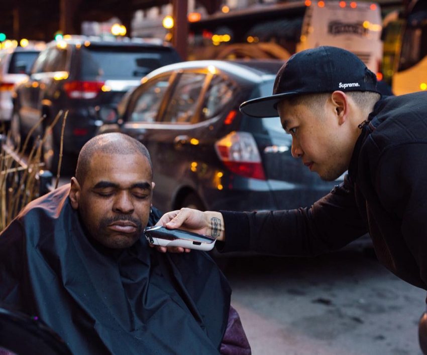 O jovem, com um salão em Nova Iorque, costuma sair para a rua nos dias de folga para cortar o cabelo a sem-abrigos. Tudo de graça, claro.