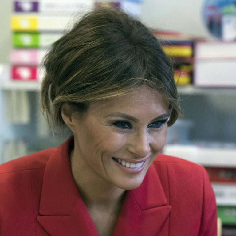 O fato realça os ombros e a “cintura de vespa” de Melania, que continua a exibir uma silhueta de manequim.