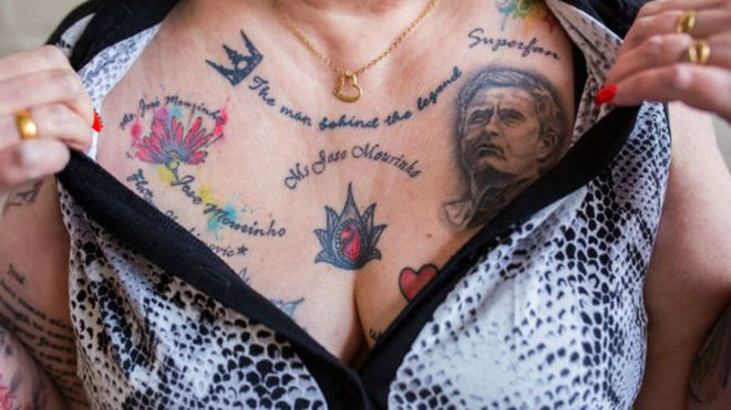 A admiradora fanática do técnico de futebol já gastou cerca de 911 euros para decorar o corpo com a cara de quem tanto adora. “As tatuagens mais pequenas custam 68 euros, mas as outras custaram-me acima dos 284 euros”, contou numa entrevista.