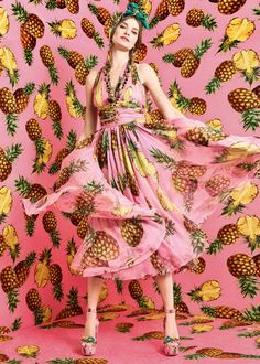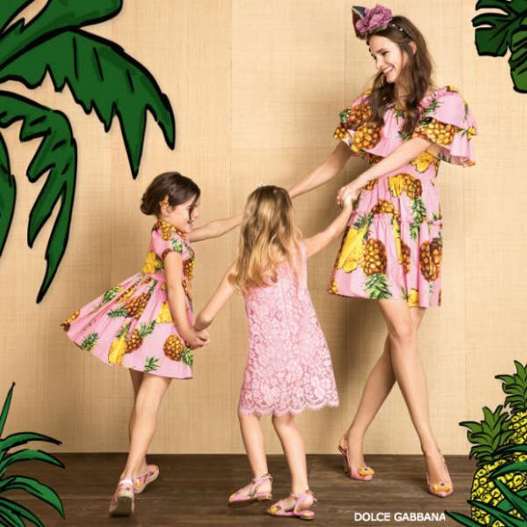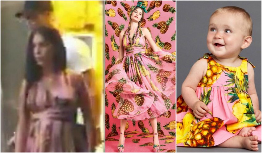 O vestido é da Dolce & Gabbana, coleção Tropical City para o verão de 2017, custa 2488 euros e é uma tendência. O outfit, rosa com estampado de ananases, também tem uma versão para as crianças.