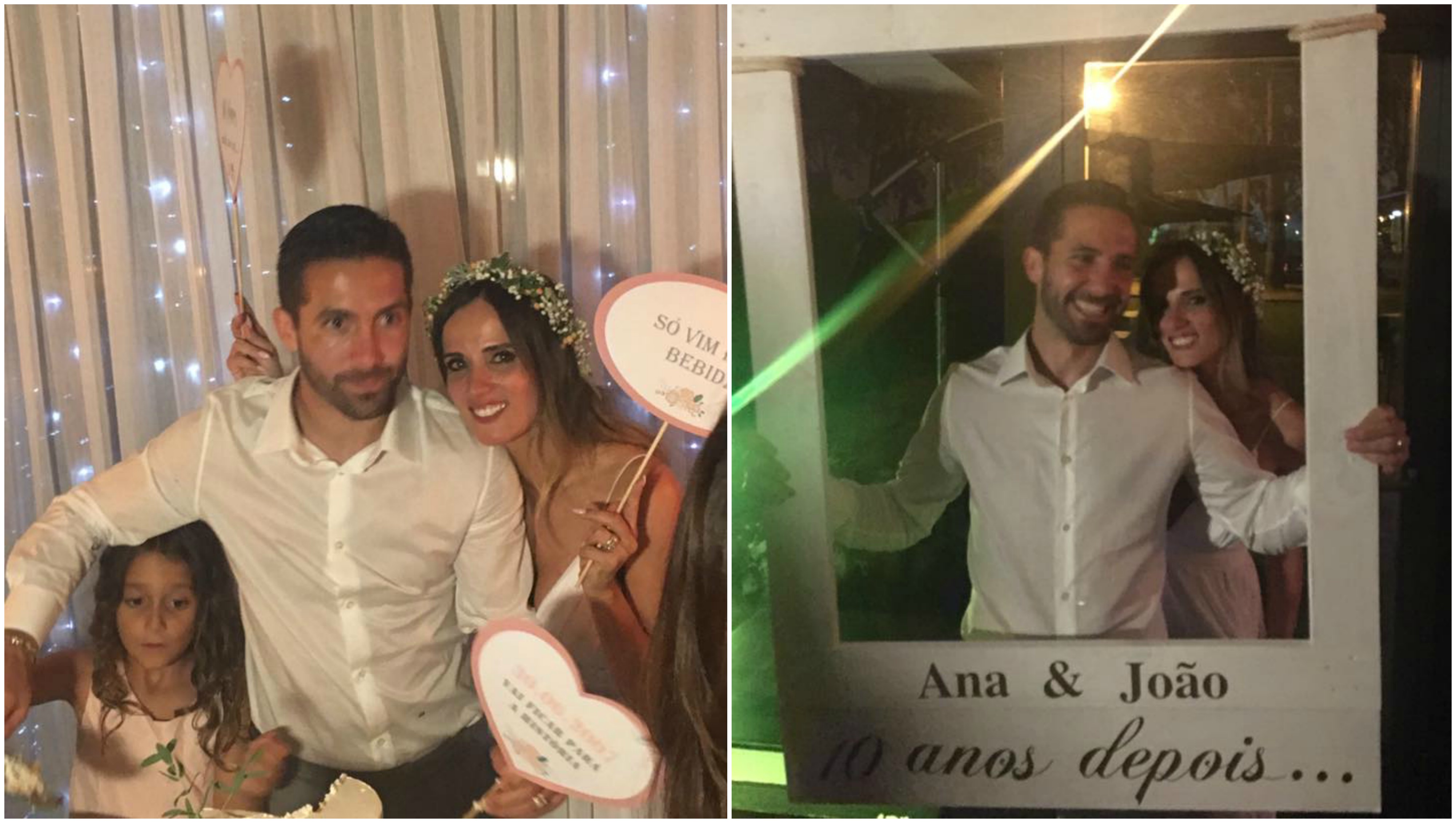 João Moutinho e a mulher festejaram com pompa e circunstância o casamento que os une há um década e do qual nasceram as duas filhas do casal, Lara e Vitória. A cerimónia decorreu em jeito de renovação dos votos matrimoniais e nem faltou o bolo ou o brinde dos ‘noivos’, nem tão pouco o beijo da praxe.