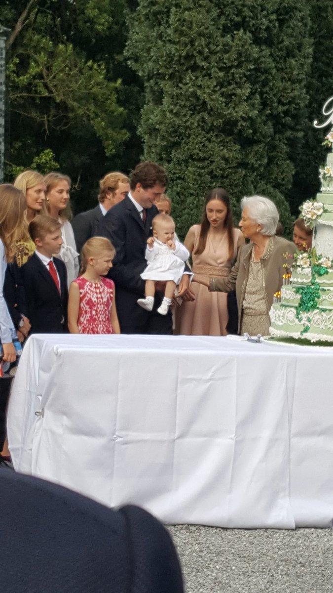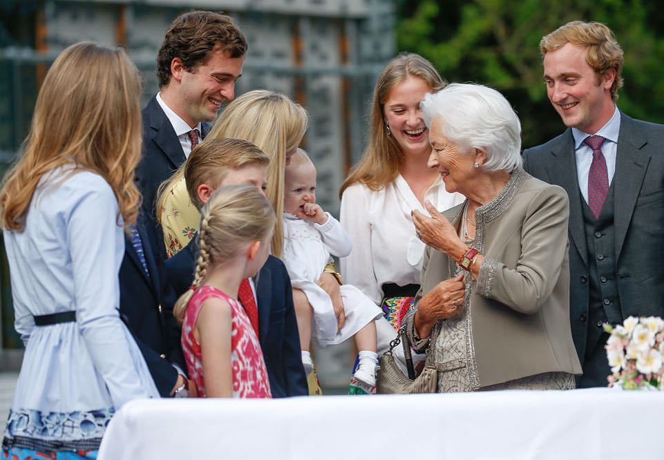 Todos os elementos da família se juntaram para o habitual retrato oficial, antes da aniversariante cortar o bolo, de inúmeras camadas e feito pela Patissier de la Maison.