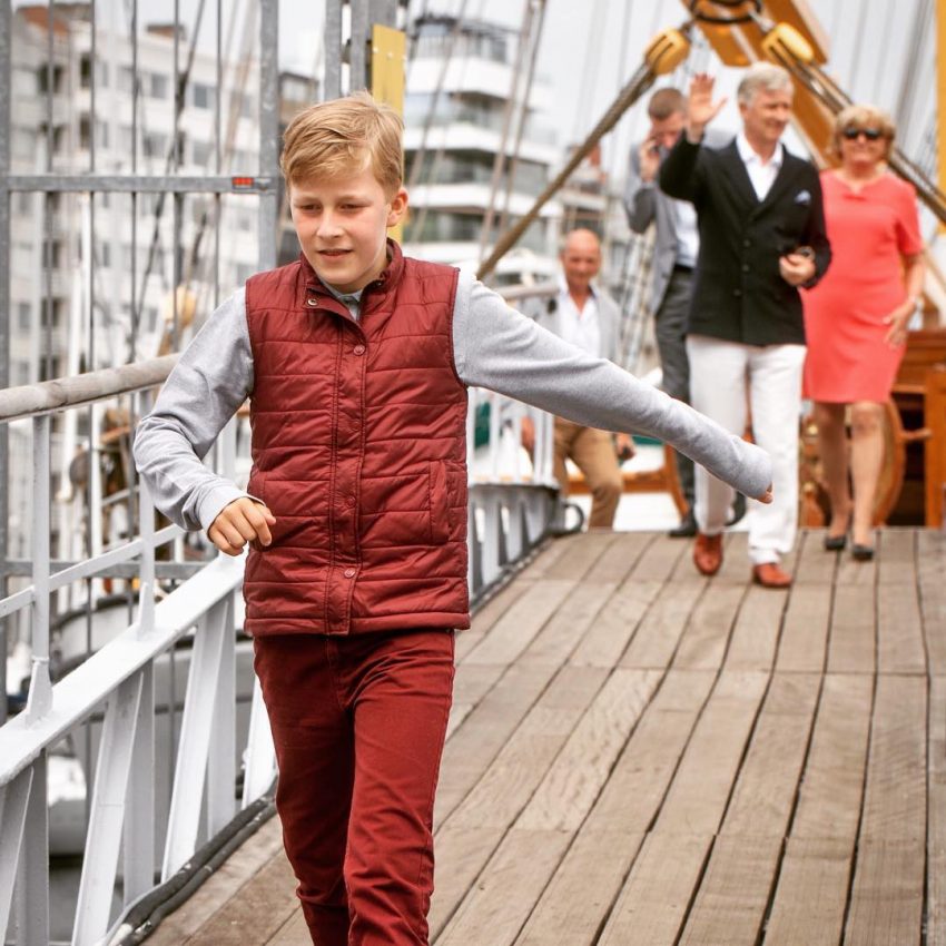 Os mais novos levavam roupa em tons bordeaux e azul, ao passo que os monarcas optaram por um look mais náutico, com branco e azul marinho.