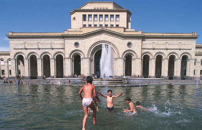 Entregue-se ao caos do minibus para dar as voltas pela cidade – por 100 Dram, e um “stop!” em voz bem alta, deixam-lhe nos marcos estimados de Yerevan. A Avenida do Norte pedestre leva-o da ópera até às fontes da Praça da República. Edifícios da era soviética imponentes durante o dia e pano de fundo elegante para um espetáculo de luzes e água à noite, uma visita à Praça da República é essencial.