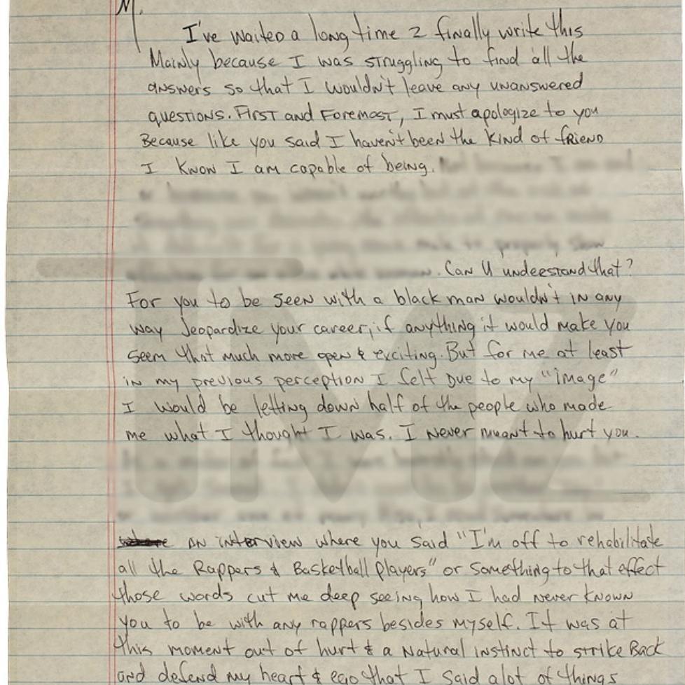 “Consegues entender isso?”, perguntou o rapper na carta. “Seres vista com um homem negro não ameaça de forma alguma a tua carreira. No máximo, faria com que parecesses muito mais liberal e excitante. Mas, para mim, pelo menos na minha perceção anterior, senti que por causa da minha ‘imagem’ eu estaria a dececionar metade das pessoas que me fizeram ser quem eu achava que era. Nunca te quis magoar”, pode ler-se num dos excertos divulgados.