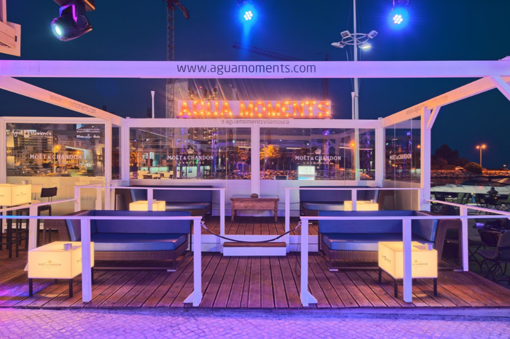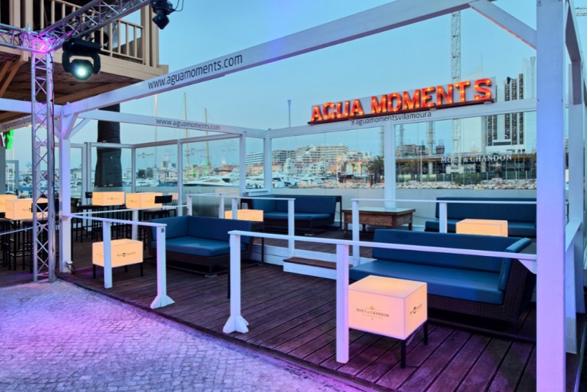 Água Moments Vilamoura, situado desde 2009 num dos extremos da Marina de Vilamoura, é o único club em Portugal onde se pode chegar de barco e entrar diretamente num ambiente de festa durante todas as noites de verão até 26 de Agosto.