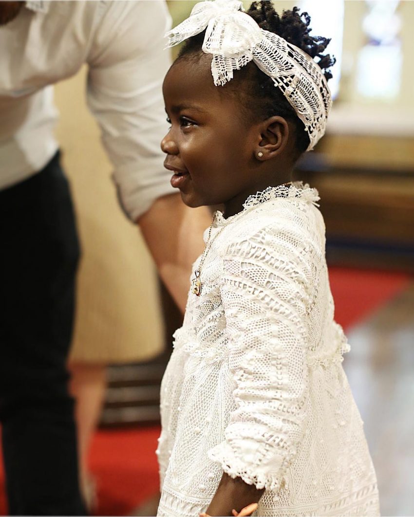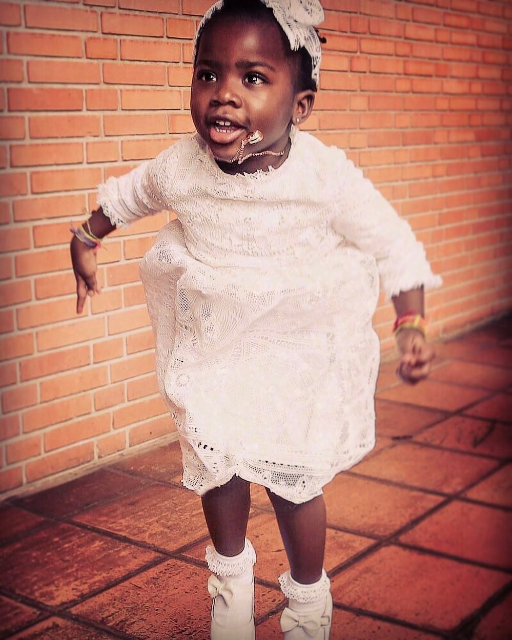 Titi, nome carinhoso pelo qual é tratada Chissomo, estava igualmente feliz, com o seu vestido branco rendado e fita na cabeça, a condizer com o look da mãe.