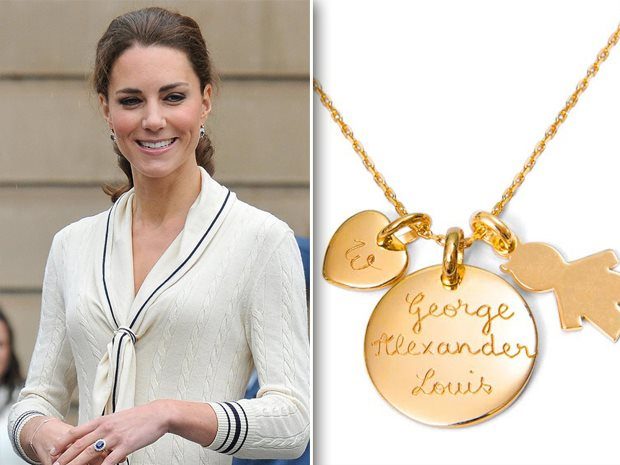 Pois pouco depois do parto de George, Kate Middleton recebeu algo idêntico. Trata-se de um colar com um disco dourado a dizer ‘George Alexander Louis’, ao lado de um coração com a letra ‘W’ (de William) e de um boneco em forma de menino.