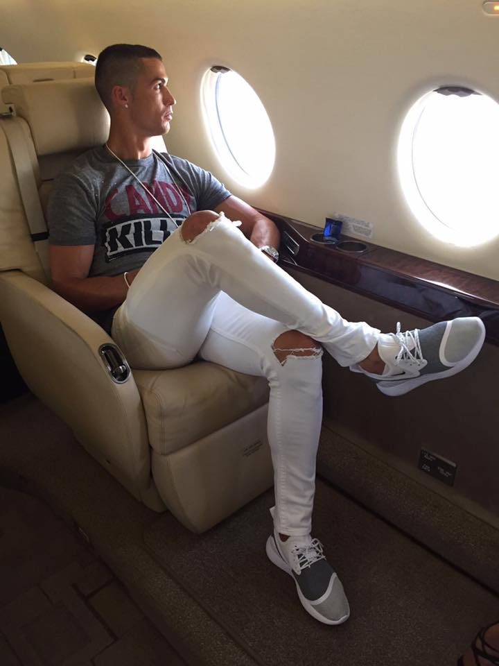 É apresentada como “o futuro do denim” com “maior mobilidade” e “conforto” e bem ao estilo de CR7 já que é bastante flexível.
