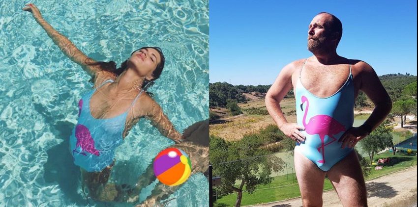 Os flamingos invadiram as piscinas, mas também o vestuário como provam o humorista português e a jornalista espanhola. Embora com propósitos diferentes, Eduardo Madeira e Sara Carbonero posaram para as redes sociais com fatos de banho iguais com a famosa ave rosa estampada na frente.
