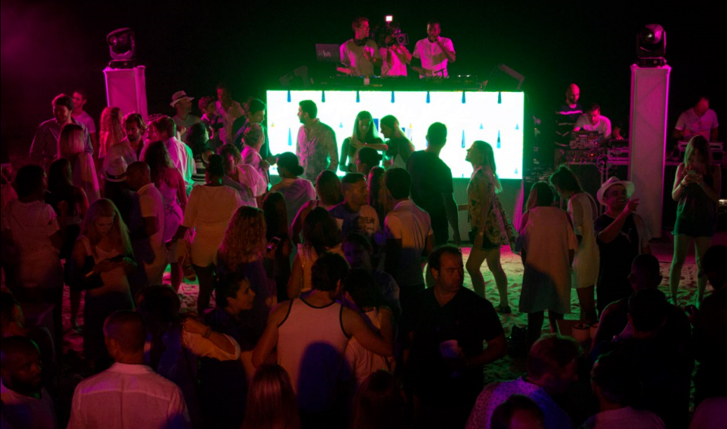 Após um dia de praia, o pôr-do-sol e o mar serviram de pano de fundo a milhares de pessoas, que dançaram vestidas de branco refrescadas pela Moët & Chandon Ice Impérial e ao som dos DJs Kamala, Sing e Daveed.