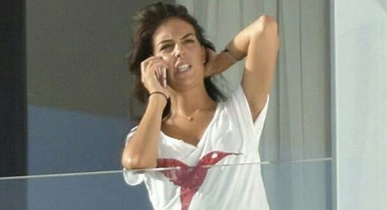 Nas fotografias partilhadas nas paginas de fãs no Instagram, Georgina Rodríguez está na varanda do hotel a conversar através do telemóvel. Vestida de forma bastante prática, mostrou que o estado de graça é real.