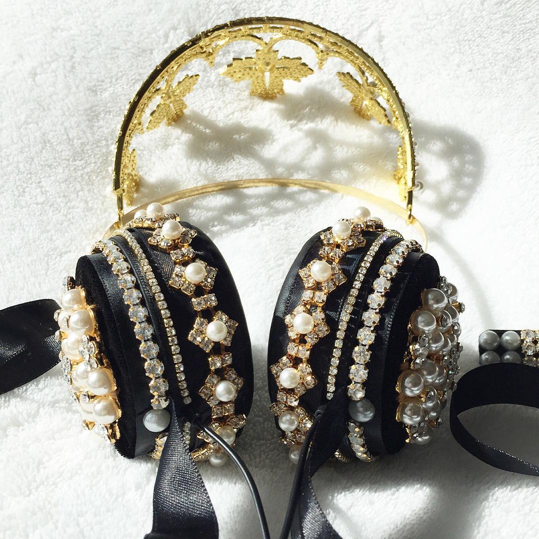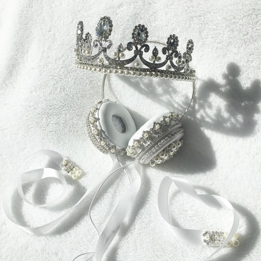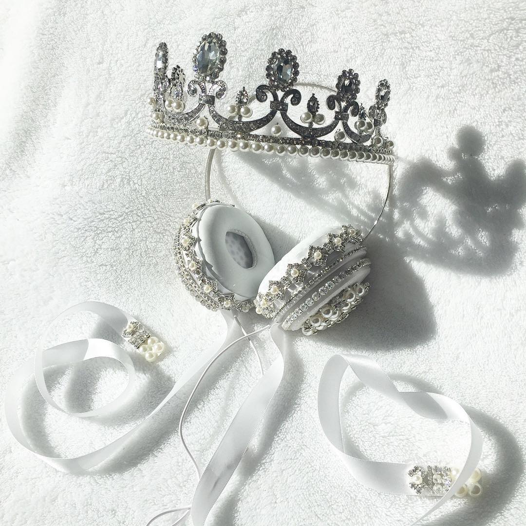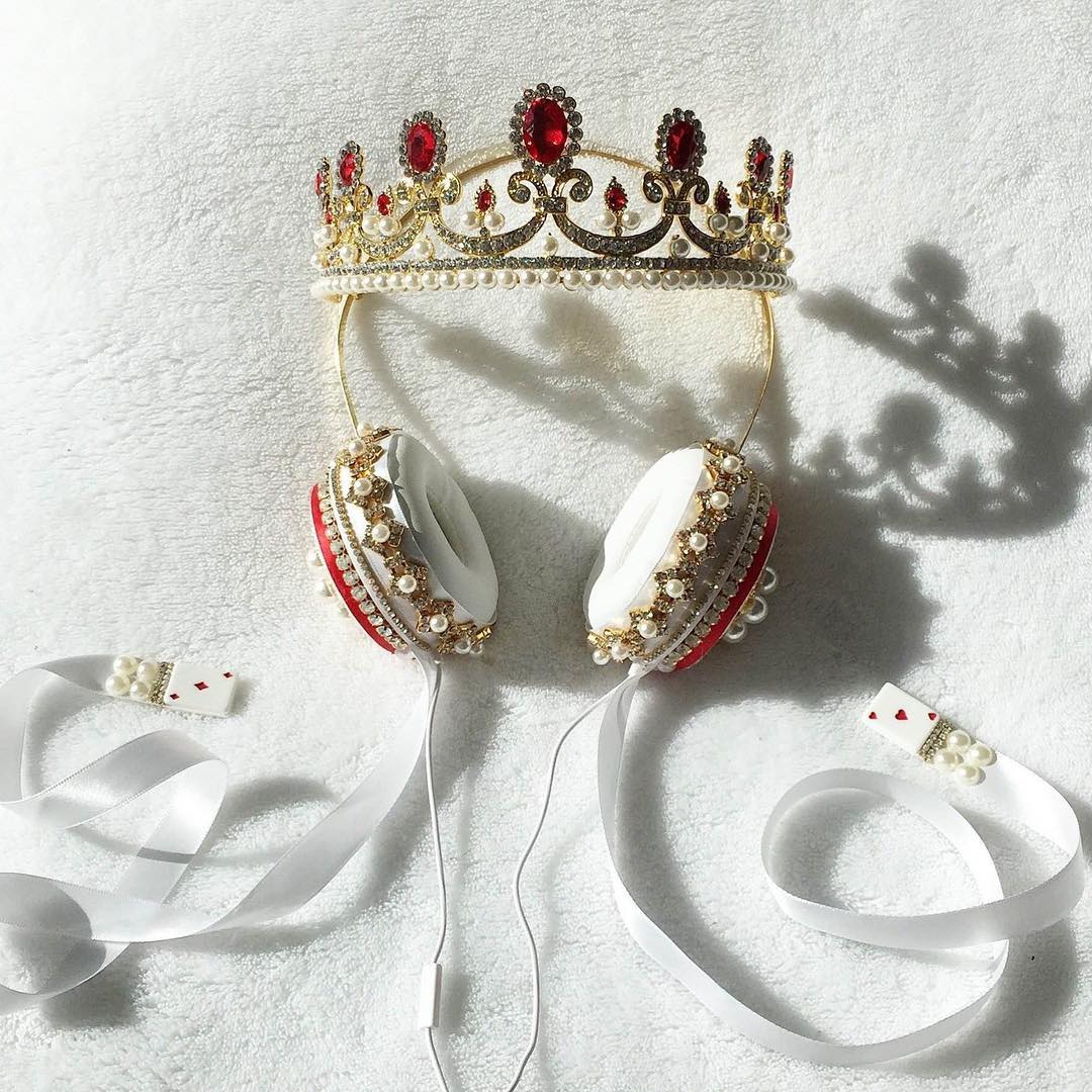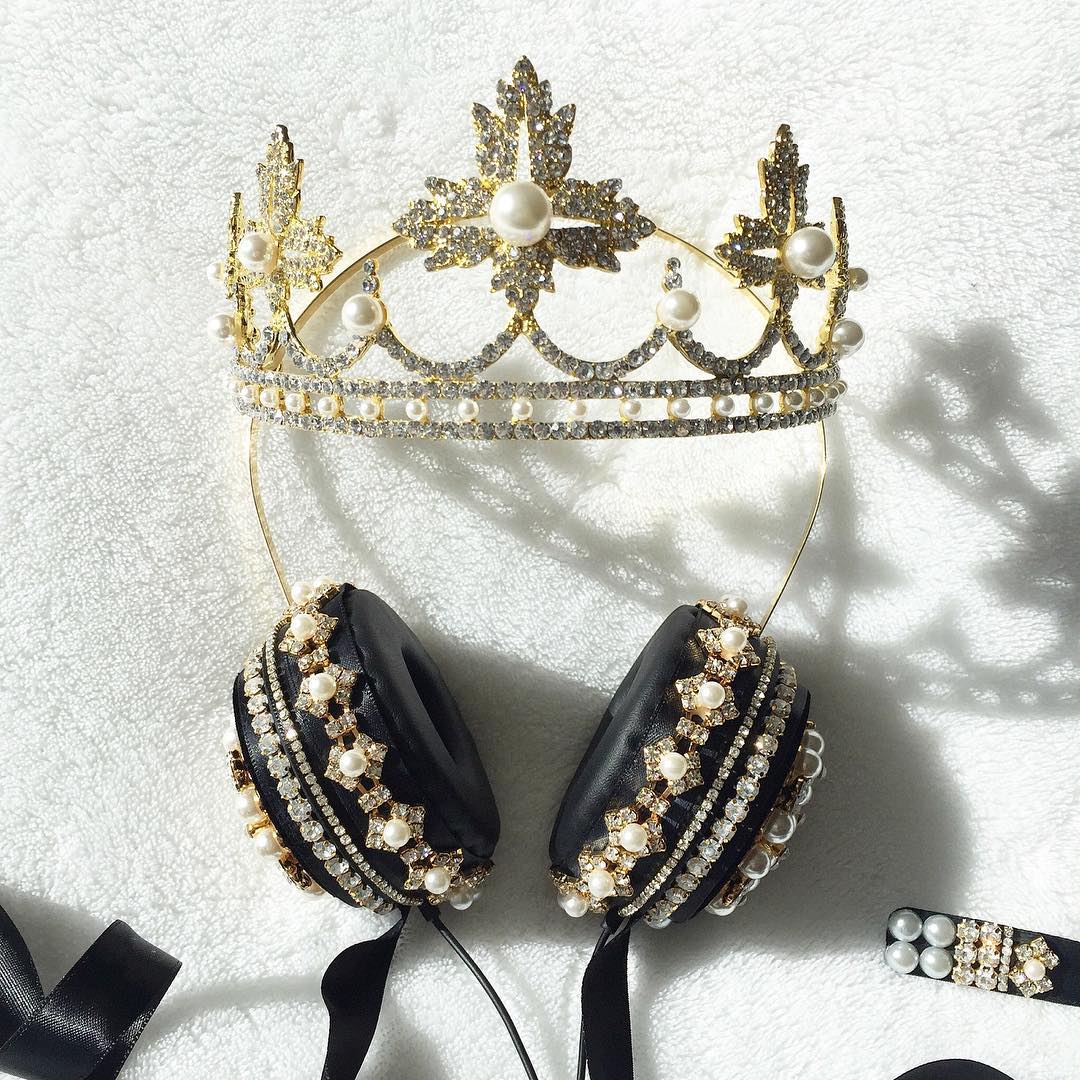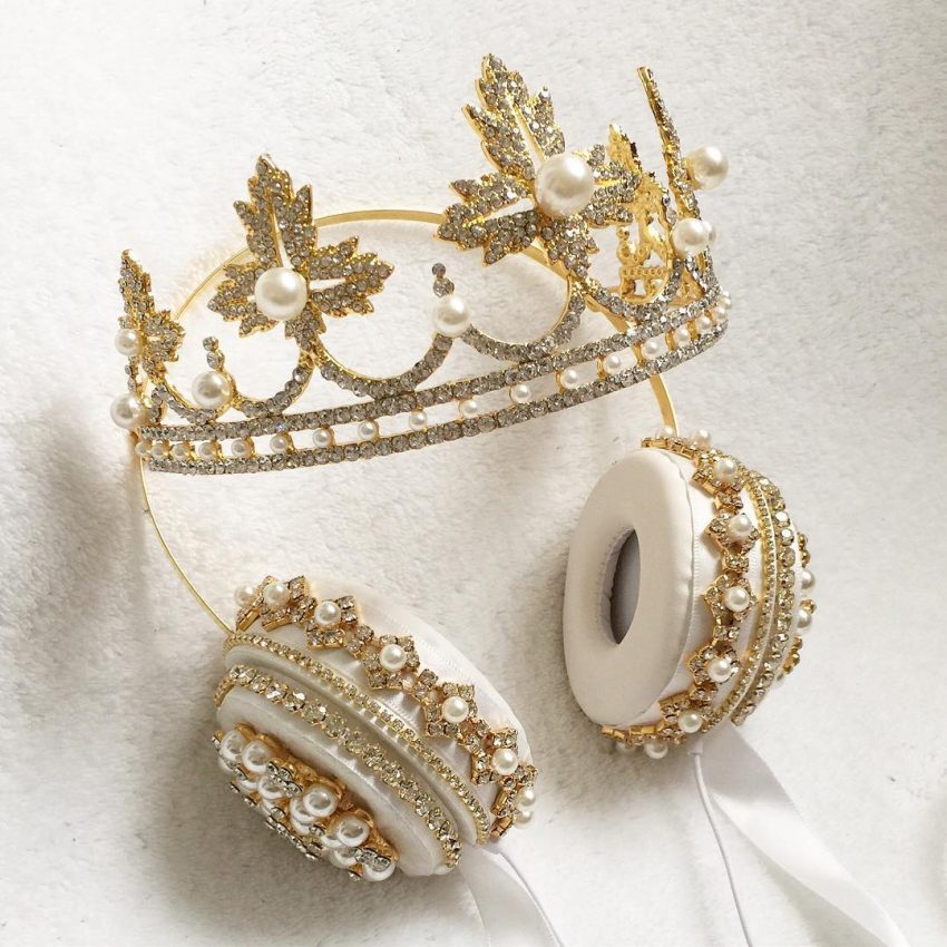 No entanto, o que vamos falar aqui é outro nível. A marca norte-americana Lit Headphones pegou nas tiaras, com a sua magnificência e joias vistosas, e incluiu-as nos fones.