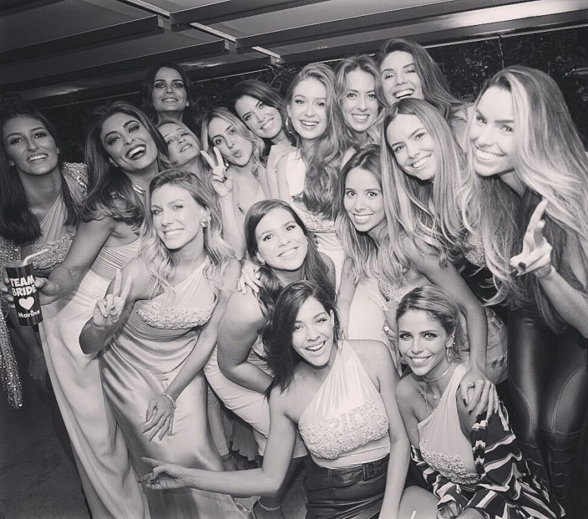 Já as amigas, entre as quais a apresentadora e modelo Fernanda Motta e a atriz Luma Costa (que é a melhor amiga de Marina e uma das responsáveis pela festa), levavam roupa a dizer ‘Bride Squad’ (esquadrão da noiva).