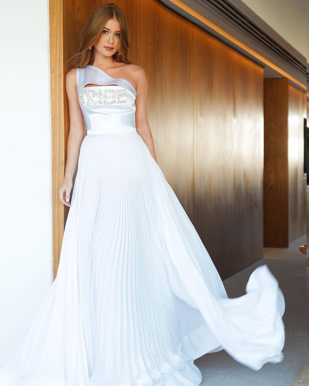 A atriz brasileira prepara-se para deixar a vida de solteira e fê-lo, como seria de esperar, em grande estilo. Marina Ruy Barbosa, que também é uma ‘it girl’, vestiu-se de branco, como uma noiva, e até levava essa palavra ao peito (‘bride’, que quer dizer noiva, em inglês).